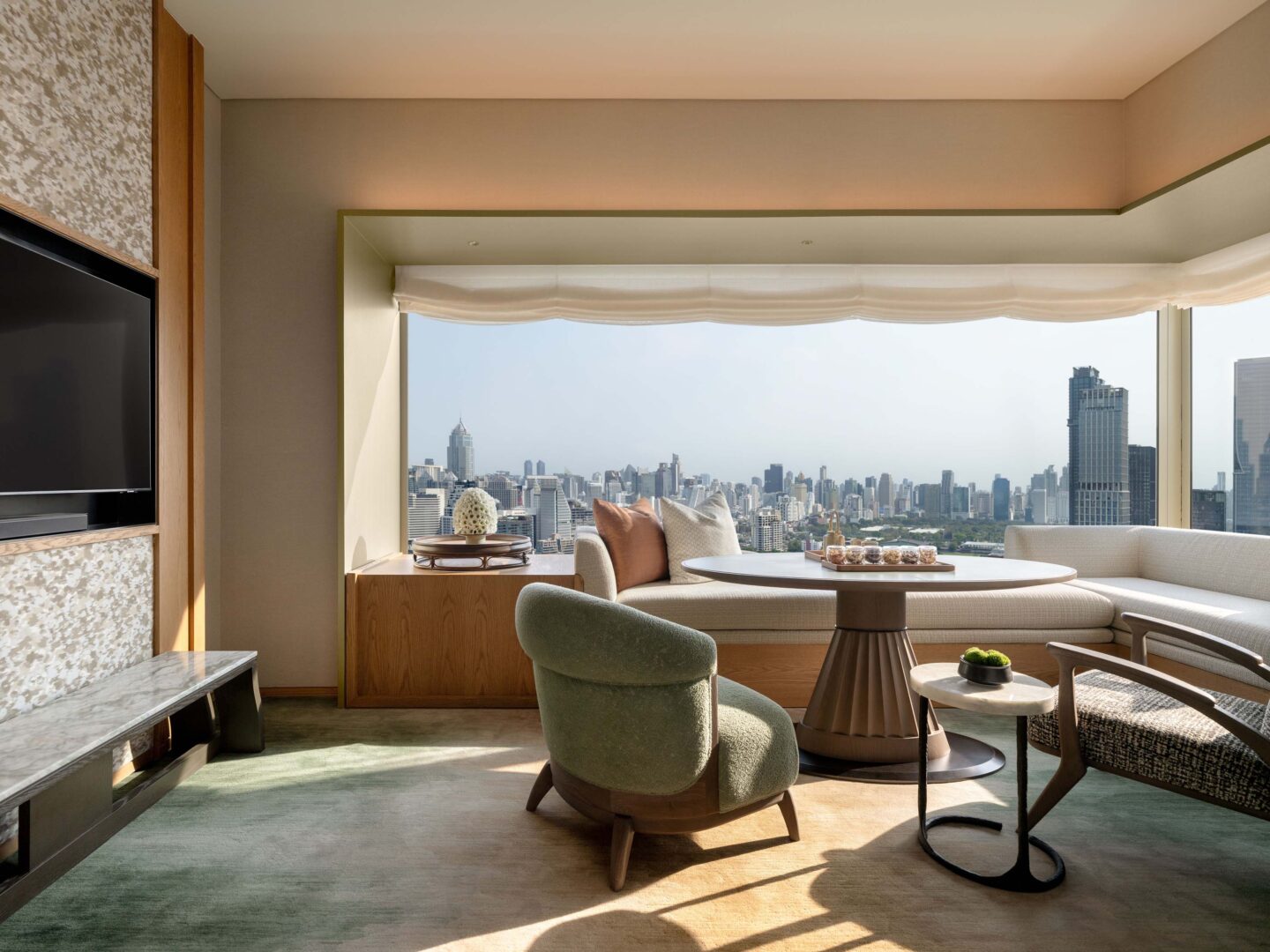 In Bangkok, the reimagined flagship Dusit Thani Bangkok, a one Michelin Key hotel, provides a refined base for experiencing the energy of Songkran while maintaining a sense of calm above the city. Located near Silom, one of the capital’s most active festival areas, the hotel combines immediate access to celebrations with elevated comfort overlooking Lumpini Park.