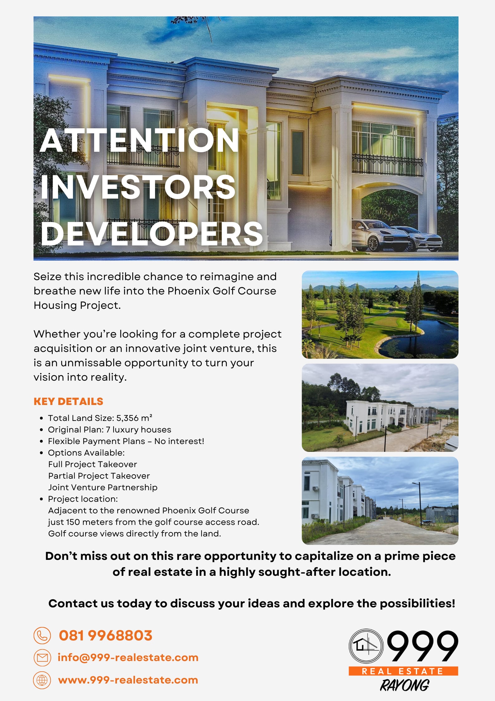 Whether you’re looking to create luxury residences, redefine the project’s scope, or explore a collaborative venture, this opportunity is truly unmissable.