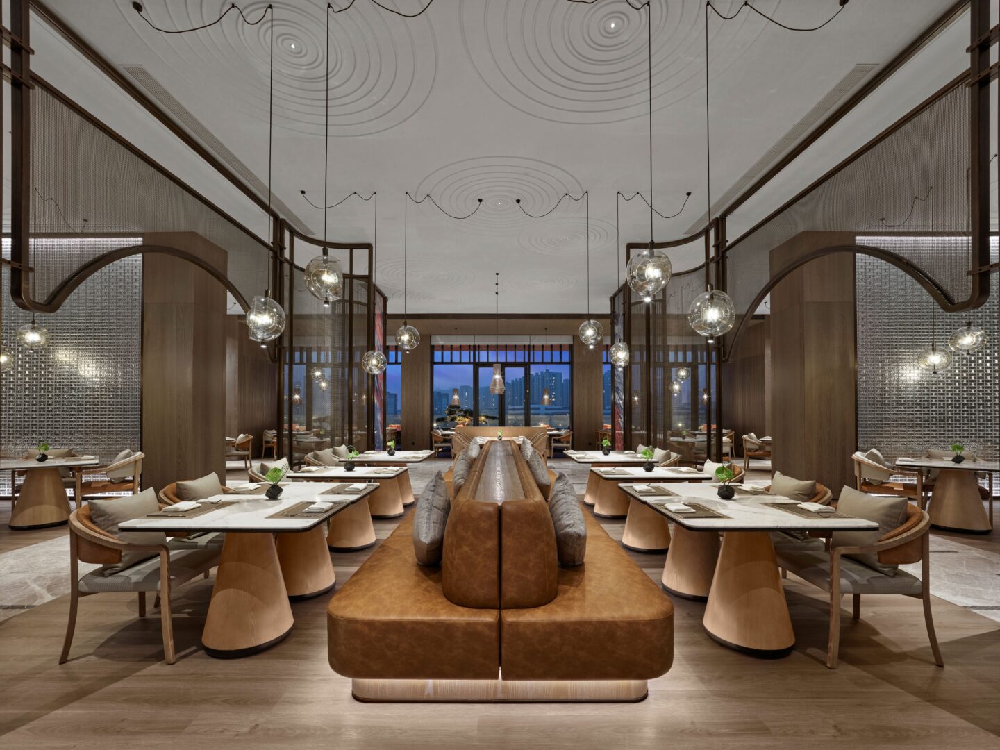 Inspired by Zhoushan’s maritime heritage, the hotel’s design incorporates textures from fishing nets, knots, feathers, and stone — a contemporary tribute to traditional crafts and island life. Conceived as a “boat of dialogue”, its spaces invite guests to journey between nature and the soul.