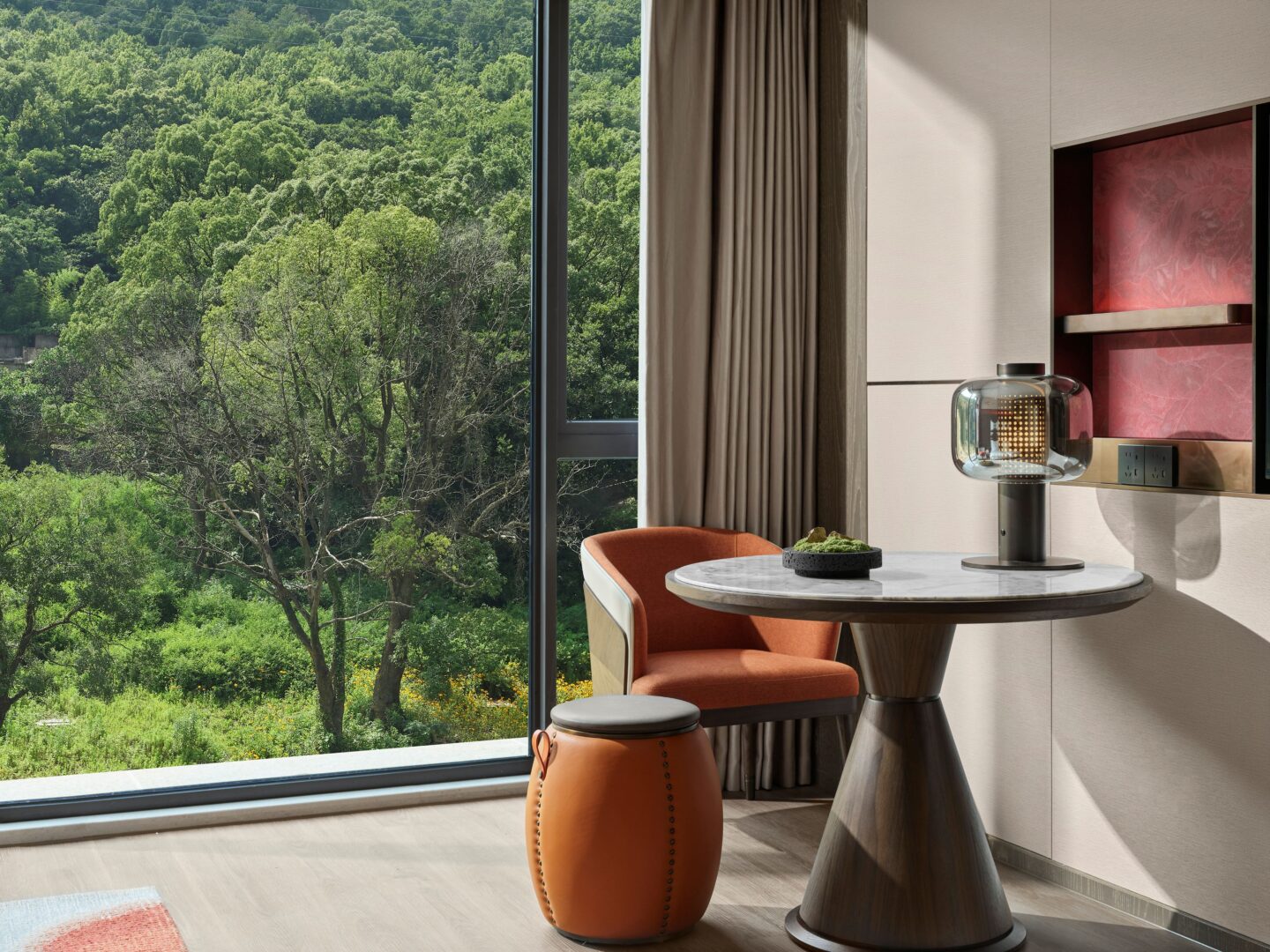 Sustainability and community connection are integral to the experience. Zhejiang’s endangered scaly-sided merganser inspires an origami installation in the lobby, and each guest receives an origami keepsake at check-in —a warm Homm welcome and a reminder of biodiversity conservation.