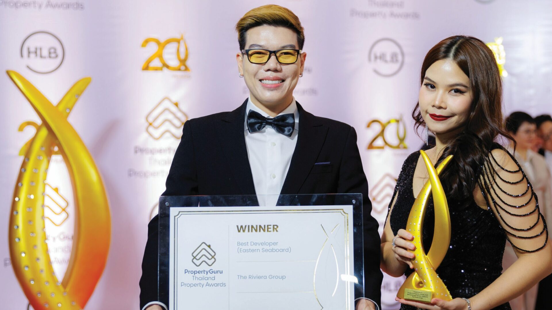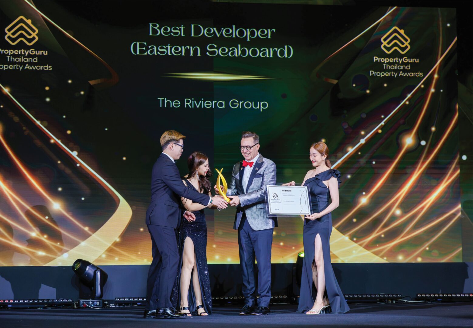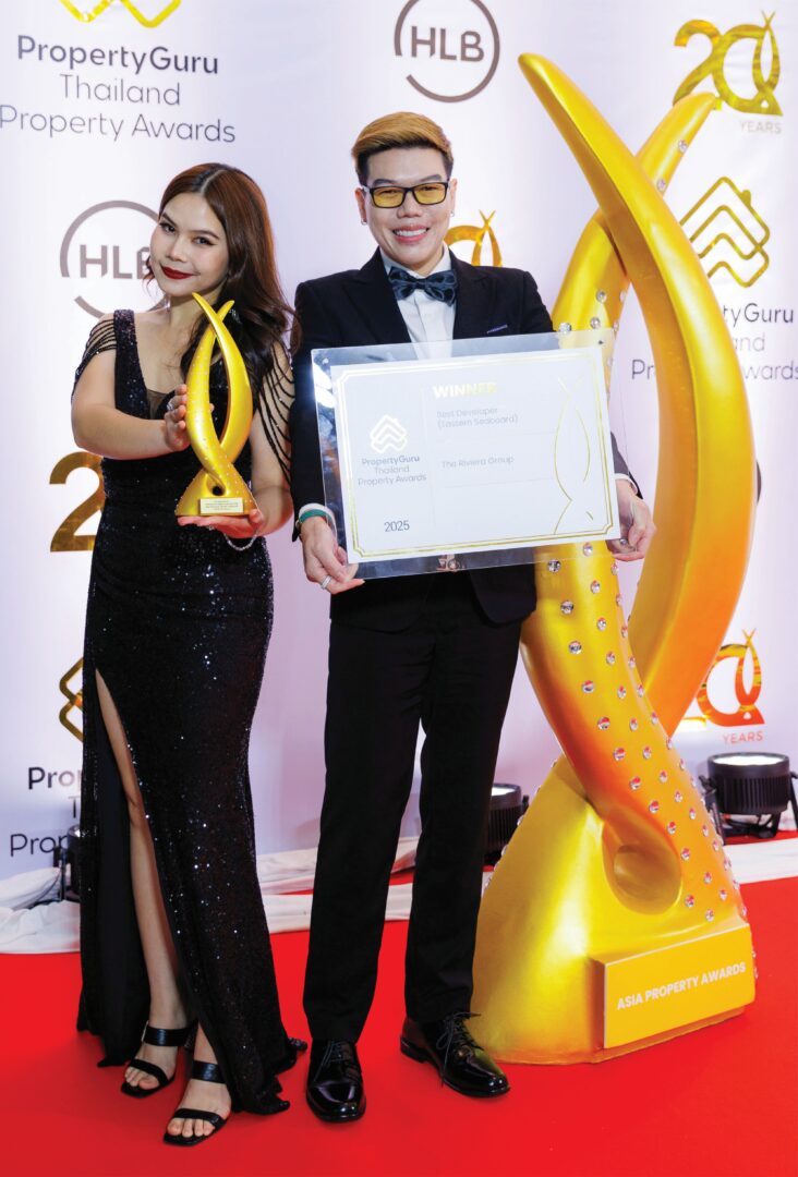 This month’s front cover features the most prestigious award a Property Developer could hope to possibly win in Pattaya, known as “The Best Developer Eastern Seaboard 2025” won this year by ‘The Riviera Group’. Not the first time either that they have scooped up this special award (won in 2023 also). Thailand Property Awards this year held their 20th Anniversary of Recognizing Thailand’s Top Property performers at the Dusit Thani, Bangkok. Winston and Sukanya Gale, Owner Developers of The Riviera Group were in Europe at the time but were delighted for their Group Sales Manager Khun Jirat Wongvisuttikul and Senior Sales Manager Khun Kanrutai Wongvisuttikul to take to the stage.