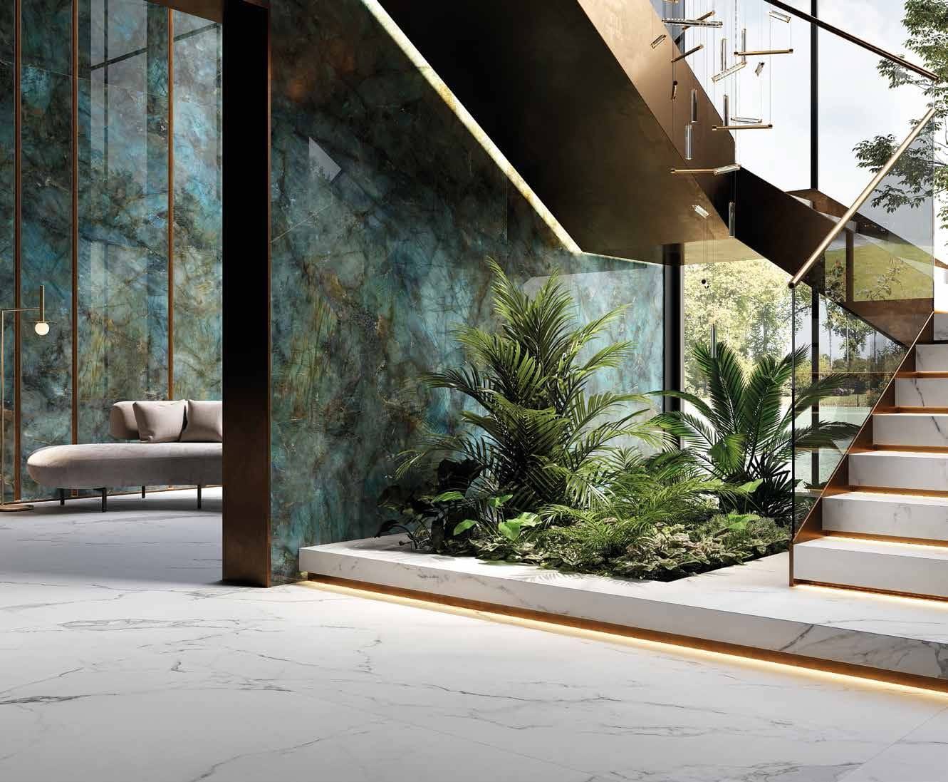 “From Nature to Life” is about creating artwork for living spaces through careful craftsmanship by designers, architects, and global creatives. It reflects the journey from the beauty of nature to a vibrant life for contemporary living. The use of sustainable materials inspired by natural elements and timeless artistic expression is emphasized. These trends highlight a continuous evolution in design, blending the natural world with modernity. They feature earthy tones, realistic textures, and vibrant gemstone shades that bring luxury and vitality to different spaces, seamlessly connecting indoor and outdoor areas.