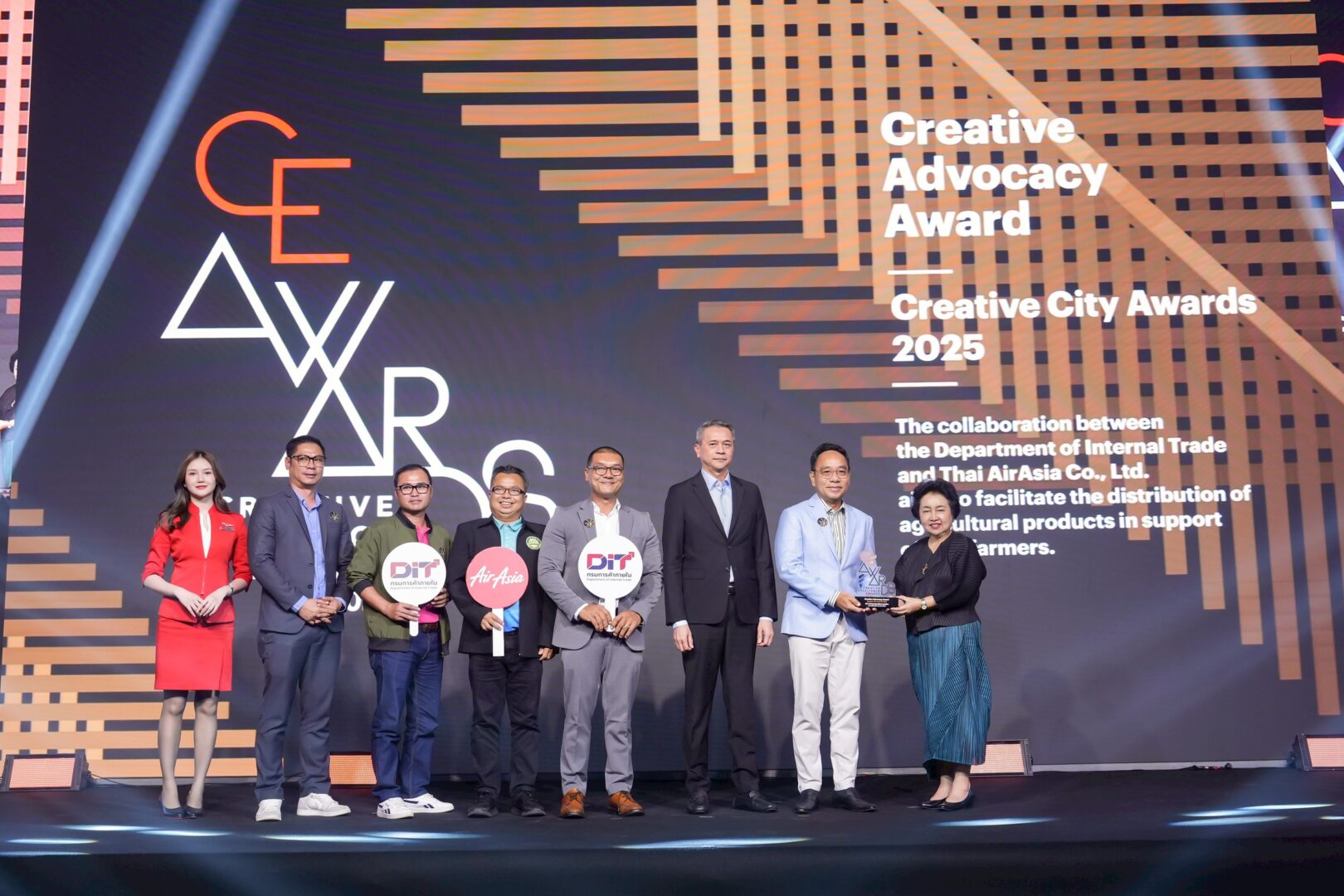 Creative Advocacy Award: DIT x AirAsia Supports Thai Farmers – a collaboration between the Department of Internal Trade, Ministry of Commerce, and Thai AirAsia Co., Ltd. The project purchases surplus fruits and transforms them into unique in-flight menu offerings, distributed on Thai AirAsia flights both domestically and internationally — creating added value and market channels for farmers throughout the harvest season.