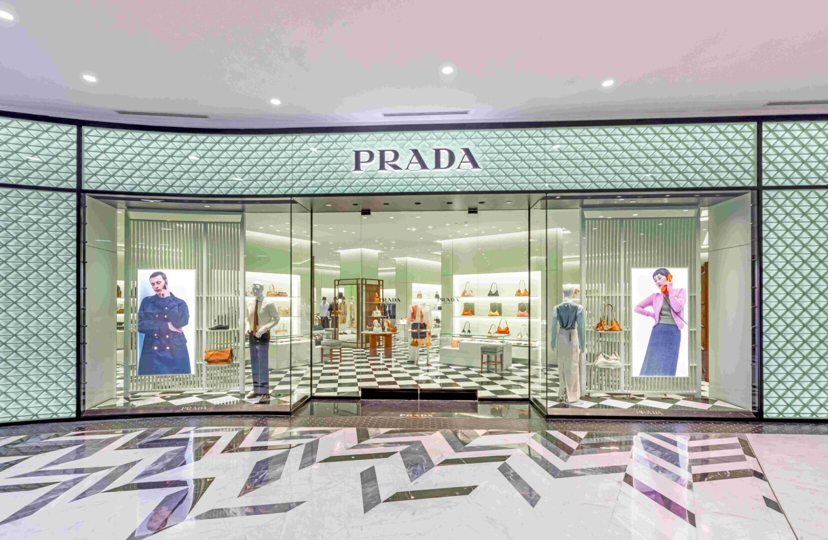 PRADA’s new boutique at Central Phuket spans 597 sq.m., featuring iconic curved glass and triangle patterns. The interior, inspired by the brand’s original Milan boutique at Galleria Vittorio Emanuele II, boasts black-and-white checkered marble floors and curved pastel green sculptural walls. The boutique offers clothing, leather goods, footwear, and accessories for men and women, including a summer collection tailored for travel and leisure.