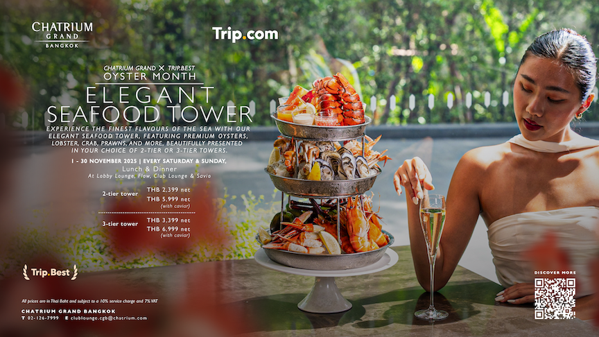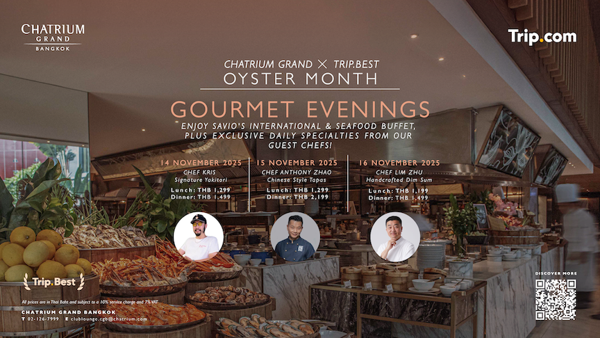 Experience “Chatrium Grand Bangkok X Trip.Best Oyster Month” from November 1-30, 2025. For reservations and more information, please visit: https://www.chatrium.com/grandbangkok/oysterevent, Tel: +66 (0) 2126 7999, Email: [email protected]