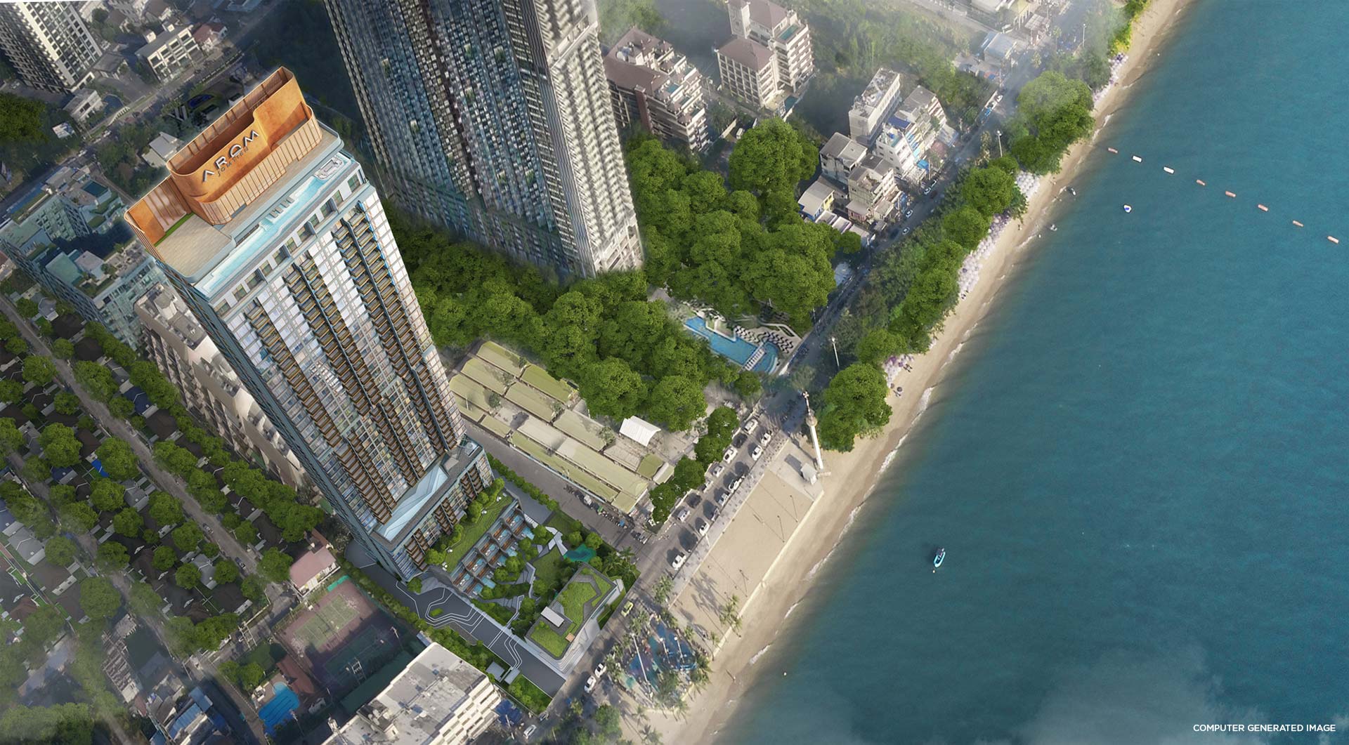 The company showcases the brand “AROM” (meaning Emotion), which has become a symbol of success. “Arom Wongamat” sold out 100% with transfer of ownership continuing. Meanwhile, “Arom Jomtien” has already achieved 90% sales.