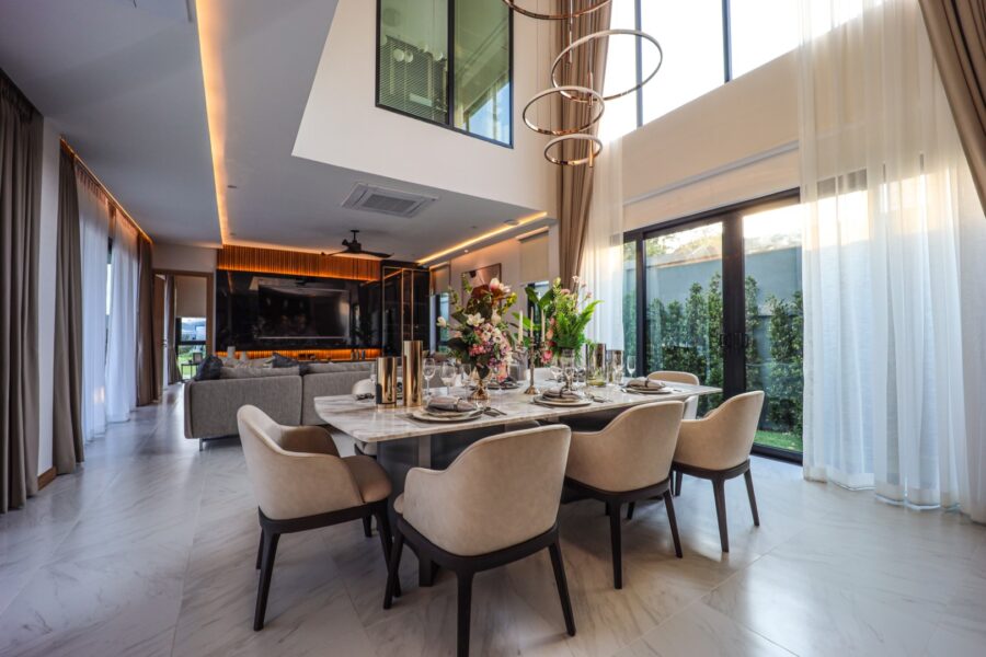 The design of the first floor, which is OPEN PLAN, will connect the home area to the massive swimming pool which is 10-meter length. The PANTRY is in a Thai style while the LAUNDRY room and the dining room are divided into the perfect portions, all of which support all kinds of family activities