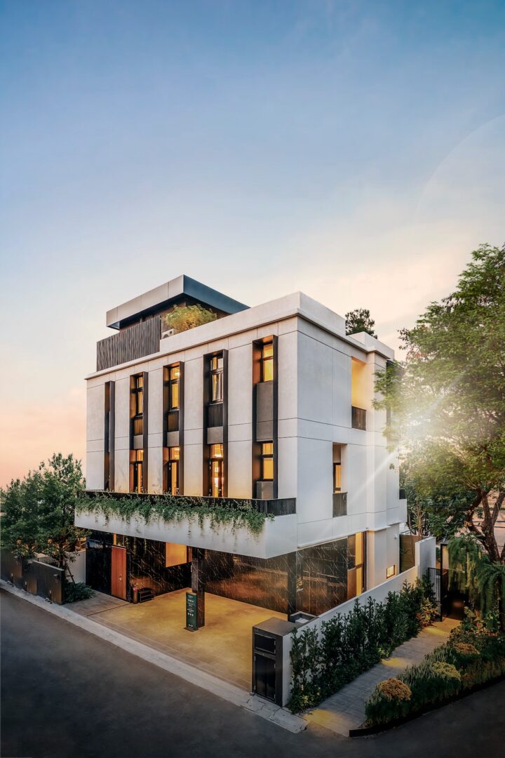 ARNA RAMA9 is a private estate offering just 8 exclusive units, located in a rare and sought-after location in the heart of Rama 9 – Ramkhamhaeng, directly connecting to the CBD. Prices start at 39.9 million THB. The project is managed by D’Well Grand Asset Co., Ltd., led by Managing Director Khun Thawanun Thanesdedsubun and Deputy Managing Director Khun Ploychanthe Vithoorachart—two executives who meticulously design every aspect of the project. Their vision is reflected in the unique character of each home, emphasizing ultimate privacy and attention to detail in every dimension. The project features real One-Way Access security systems and is surrounded by 360-degree nature.