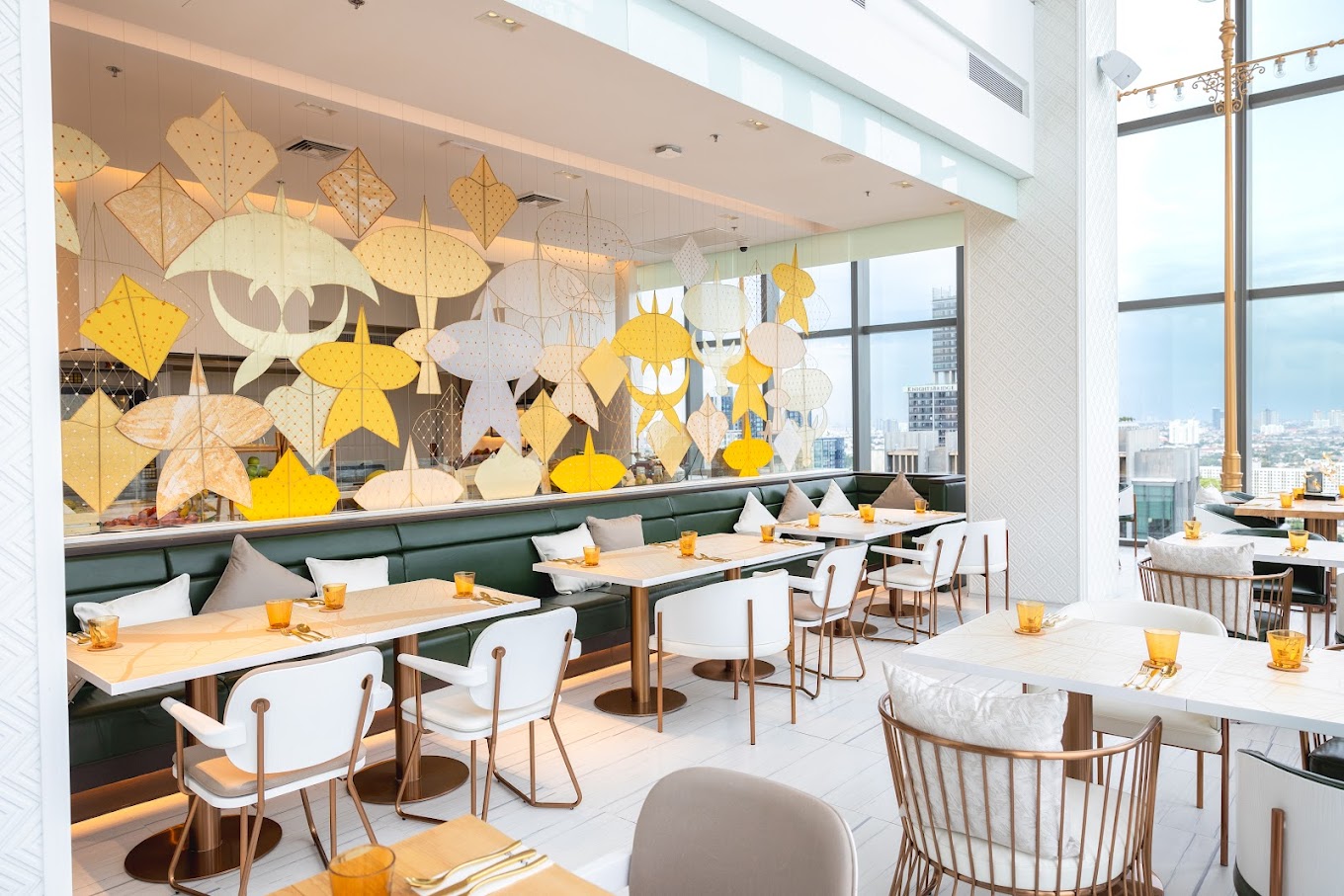 Situated on the hotel’s 31st floor and dominated by soaring windows giving way to spectacular views of Bangkok, The Kites Eatery is adorned with abstract artwork of kites – a reference to the popular pastime of kite flying in state park Sanum Luang.