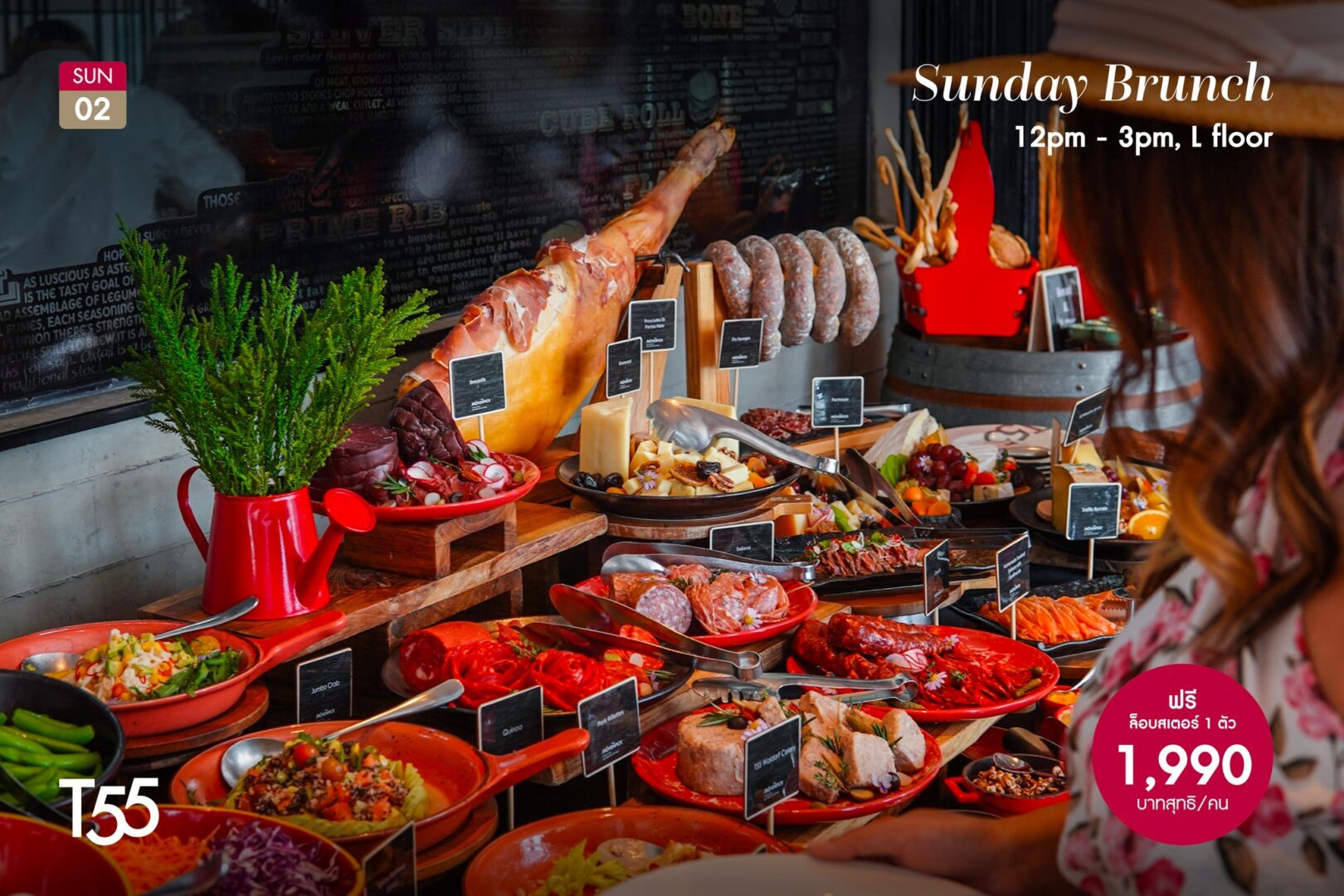 Join us for an exquisite Sunday Brunch experience at T55 New York Grill Room. Enjoy a lavish spread featuring Australian Wagyu Beef, imported oysters, cold cuts, seafood, unlimited egg Benedict, live cooking, sushi, sashimi, and a wide dessert selection.