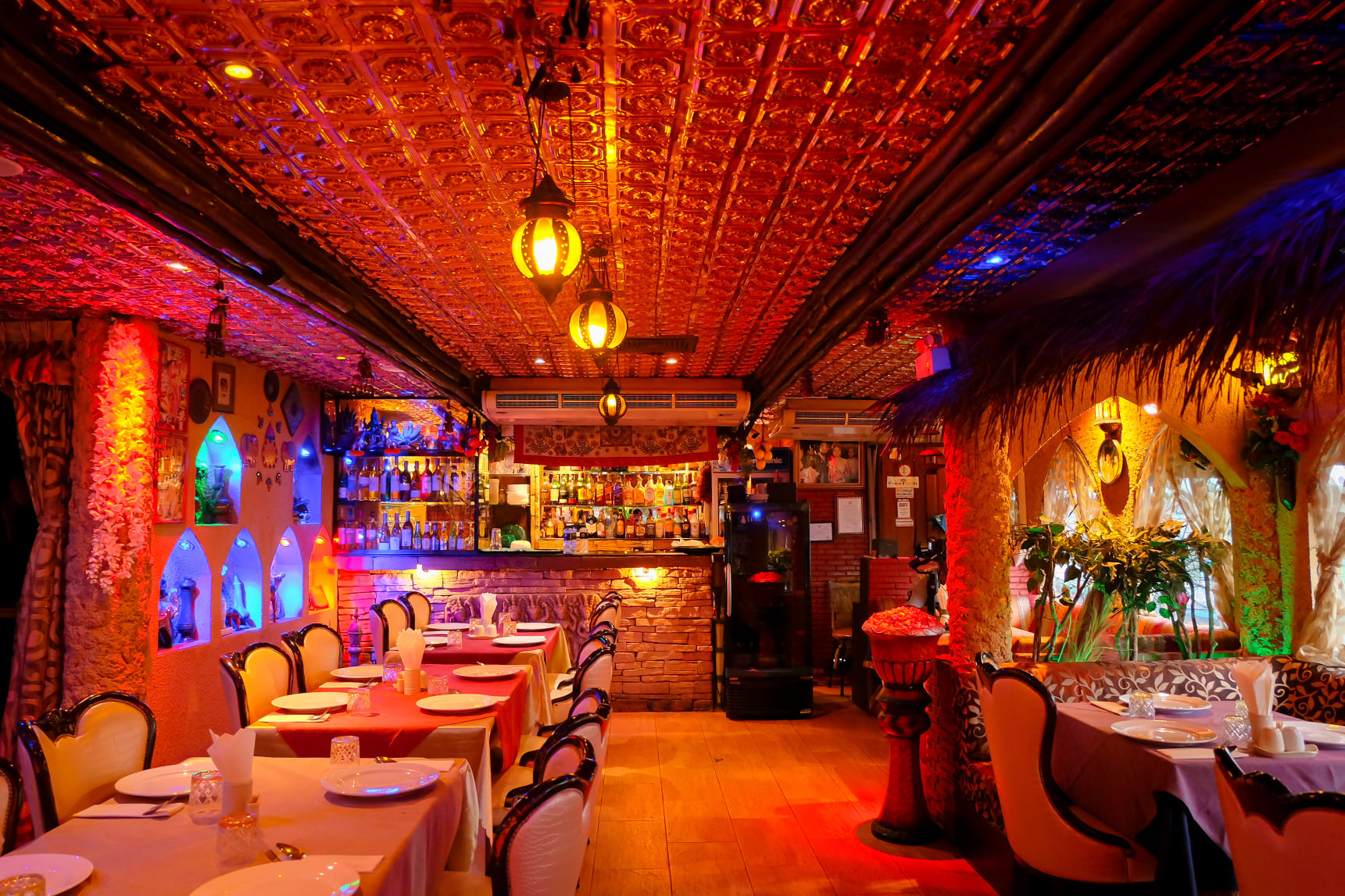 The name “Alibaba” was inspired by an Arabic folk tale about adventure and treasure caves. The restaurant was designed to resemble a treasure cave, filled with decorations collected from around the world, including items from their travels in Thailand, India, Morocco, Iran, and Iraq.
