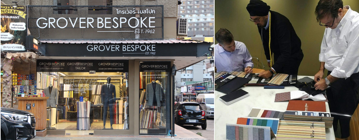 In 1971, Mr. Grover’s father, Paramjit Grover, moved to Pattaya and opened a tailoring shop called “Grover Bespoke,” focusing on excellent service and fine tailoring, from suits and shirts to trousers and both formal and casual wear. The shop’s highlight was its custom designs and tailoring based on customers’ needs, with meticulous attention to detail in every step. The shop is now located in a commercial building on Central Pattaya Road, near the Alibaba restaurant, and it also offers premium leather products from India, such as jackets, bags, and belts.