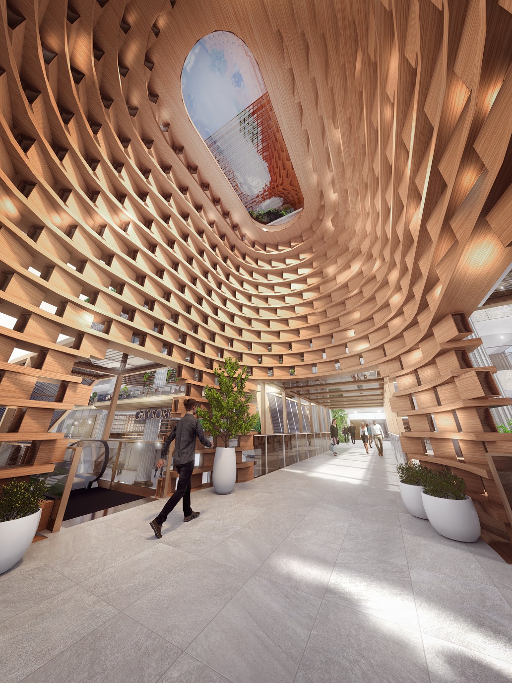 Co-created by CL3, an international awards-winning design studio from Hong Kong who also designed Gaysorn Tower, the design of the new connection is conceived with a view to enhance the environment of the entire precinct and transforming it into a continuous experience within all three buildings of Gaysorn Village.
