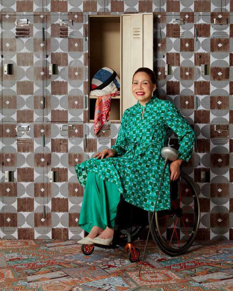 Joining the special fashion campaign is the inspiring Saisunee “Waew” Jana, a multiple Paralympic gold medalist in wheelchair fencing. At the shoot, she embodies a classic feminine look, gracefully wielding her épée alongside Jim Thompson fashion items. “As a Thai Paralympian, I am honored to be part of Jim Thompson’s special campaign. My goal is to bring home the gold for Thailand.” Looking ahead to the Paralympic Games in Paris starting at the end of August, she emphasizes, “Every support means the world to us.”
