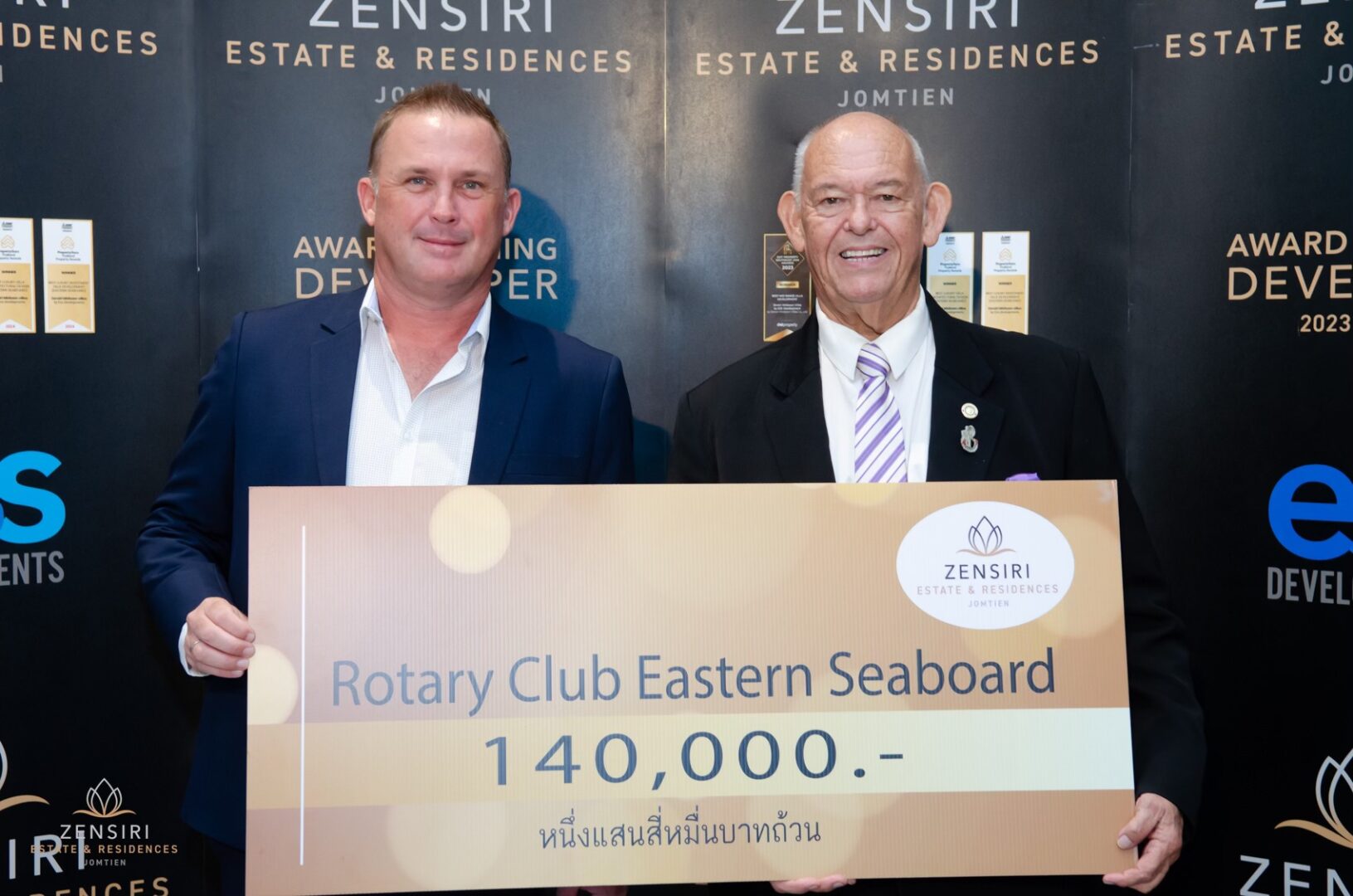 On November 28, 2024, the official launch event for Zensiri Estate & Residences was held at the Courtyard by Marriott North Pattaya, led by Gavin Perfect, Director of ESS Developments. During the event, a donation of 140,000 Baht was presented to the Rotary Club Eastern Seaboard for underprivileged children.
