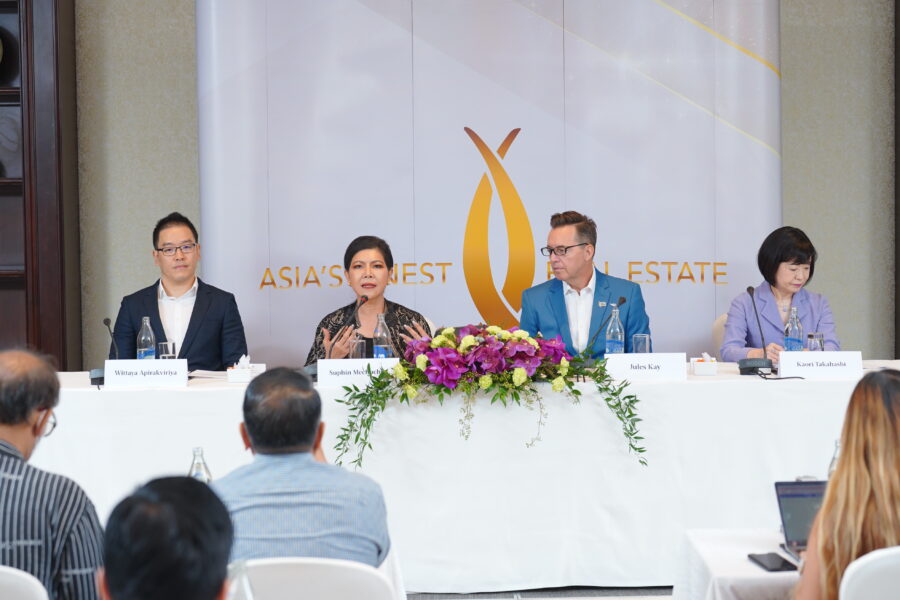 Wittaya today joined Jules Kay, general manager of the PropertyGuru Asia Property Awards and Events, as well as Suphin Mechuchep, chairperson of JLL Thailand and the chairperson of the judges of PropertyGuru Thailand Property Awards; Paul Ashburn, co-managing partner of HLB Thailand, the Official Supervisor of the Awards; and Kaori Takahashi, managing director of Mitsubishi Elevator (Thailand) at the media launch of the Awards held at the VA Drawing Room of The Athenee Hotel, a Luxury Collection Hotel, Bangkok.