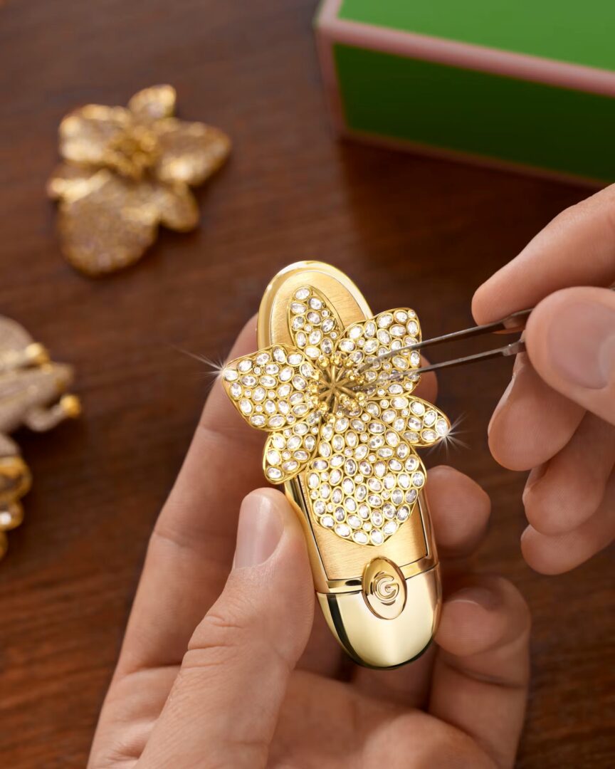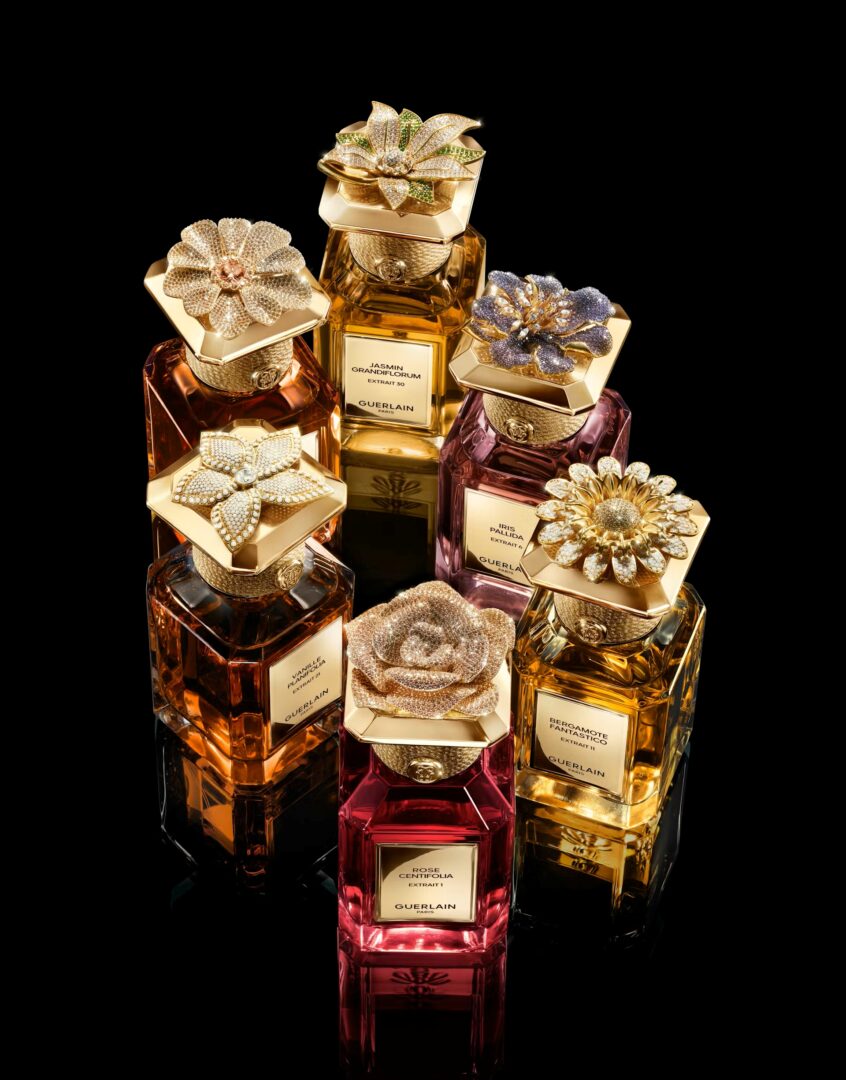 In 2026, the designer has created a new Exceptional Piece, transforming the Bee Bottle into an imaginary Garden. This exquisite creation has been fashioned by Pochet du Courval, Guerlain’s glassmaker since 1853. Gold, bronze, set gems and sculpture are all interlaced on the bottle as the iconic silhouette becomes the stage for luxuriant decoration. Botanical and animal motifs and a myriad of gem-set flowers – jasmine, rose, bergamot and vanilla blossom – evoke the ingredients in the Guerlinade, blossoming alongside frogs and bees.  Crafted entirely by hand in Begüm Khan’s Istanbul workshops, this precious garden – which requires ten days of work – springs to life in the radiance of some 8,353 gemstones. Amidst this conversation of meticulously precise gestures, each minute detail interplays with the others.
