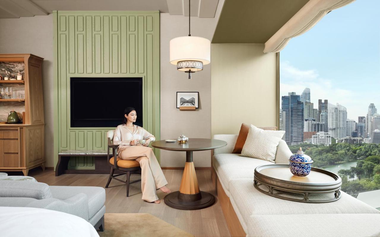 Beyond aesthetics, the new Dusit Thani Bangkok also incorporates Feng Shui principles for a holistic guest experience. “Our goal,” explained Mr Somkiat Lo-Chindapong, Deputy Managing Director of Architects 49 Limited (A49), “was to seamlessly integrate world-class design with the legacy of the original hotel, and this included marrying ancient Feng-Shui wisdom about wind and water with modern architecture. This approach is evident in the building’s positioning within Dusit Central Park, ensuring each guest room offers unobstructed views of Lumpini Park through large bay windows with a luxurious gold finish. These breathtaking vistas act as ‘golden frames of memories,’ drawing positive energy into the hotel while creating lasting impressions for guests.