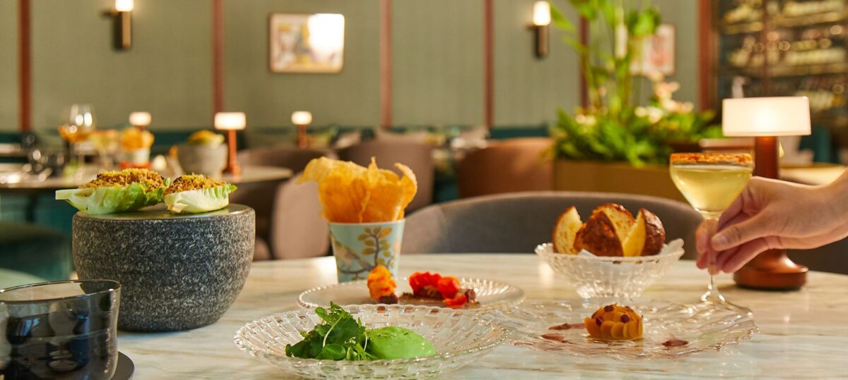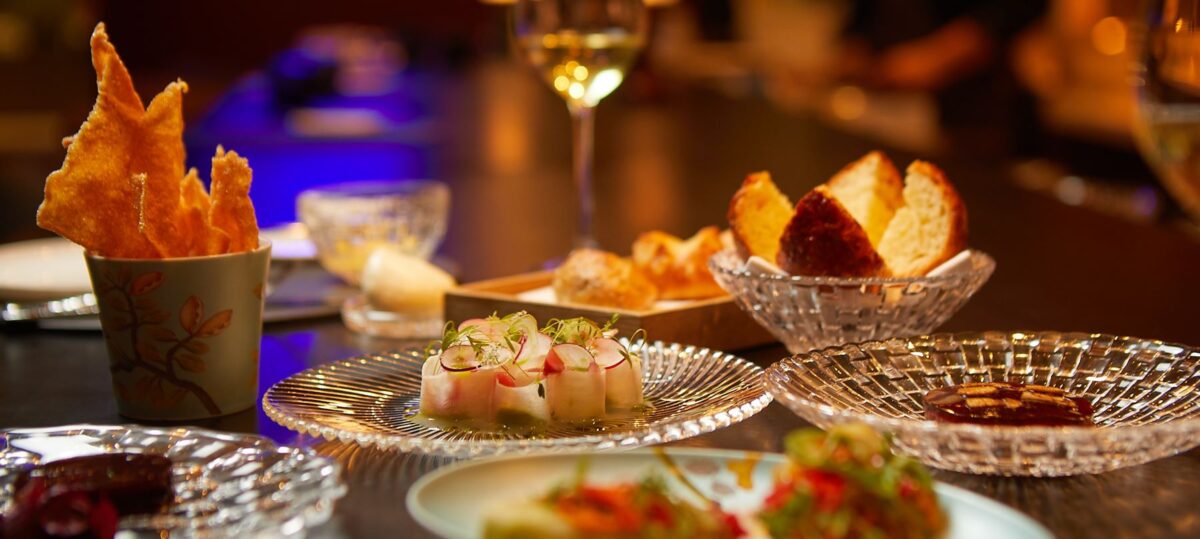 On arrival, guests are invited to sit at the kitchen counter, where they can enjoy welcome snacks and have the opportunity to interact with the chefs before arriving at their reserved table to enjoy the rest of the meal.