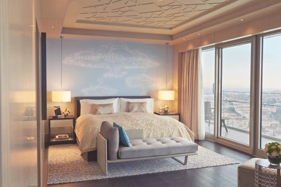 What’s this? A five-star Istanbul hotel with not a jot of faded Ottoman splendor to be seen… Yet Raffles is Istanbul through and through—a new moneyed side to the city that’s all-gilt glass and Gucci, set as it is within the Zorlu Center (a sort of Dubai-does-Westfield on a giant scale) on a hilltop in Besiktas. Overstated glamour is the name of the game here. Vast crystal chandeliers dominate its sparkly atria and gourmet restaurants. Swimming pools glitter inside and out—in the extensive spa and in Lounge 6, a summertime rooftop pool bar showcasing long-reaching views and the work of the world’s leading cosmetic surgeons. The Long Bar is a wine-red Turkish take on the Singapore original which, as well as the signature Sling, shakes up uniquely Istanbul concoctions (the bourbon, cumin, and baklava Topkapi Palace, for example). There are 181 contemporary rooms and penthouse suites stacked in high-rise towers (all with butler service), the best with views across the city to the strait beyond. Rest assured; the helipad is heated in winter.