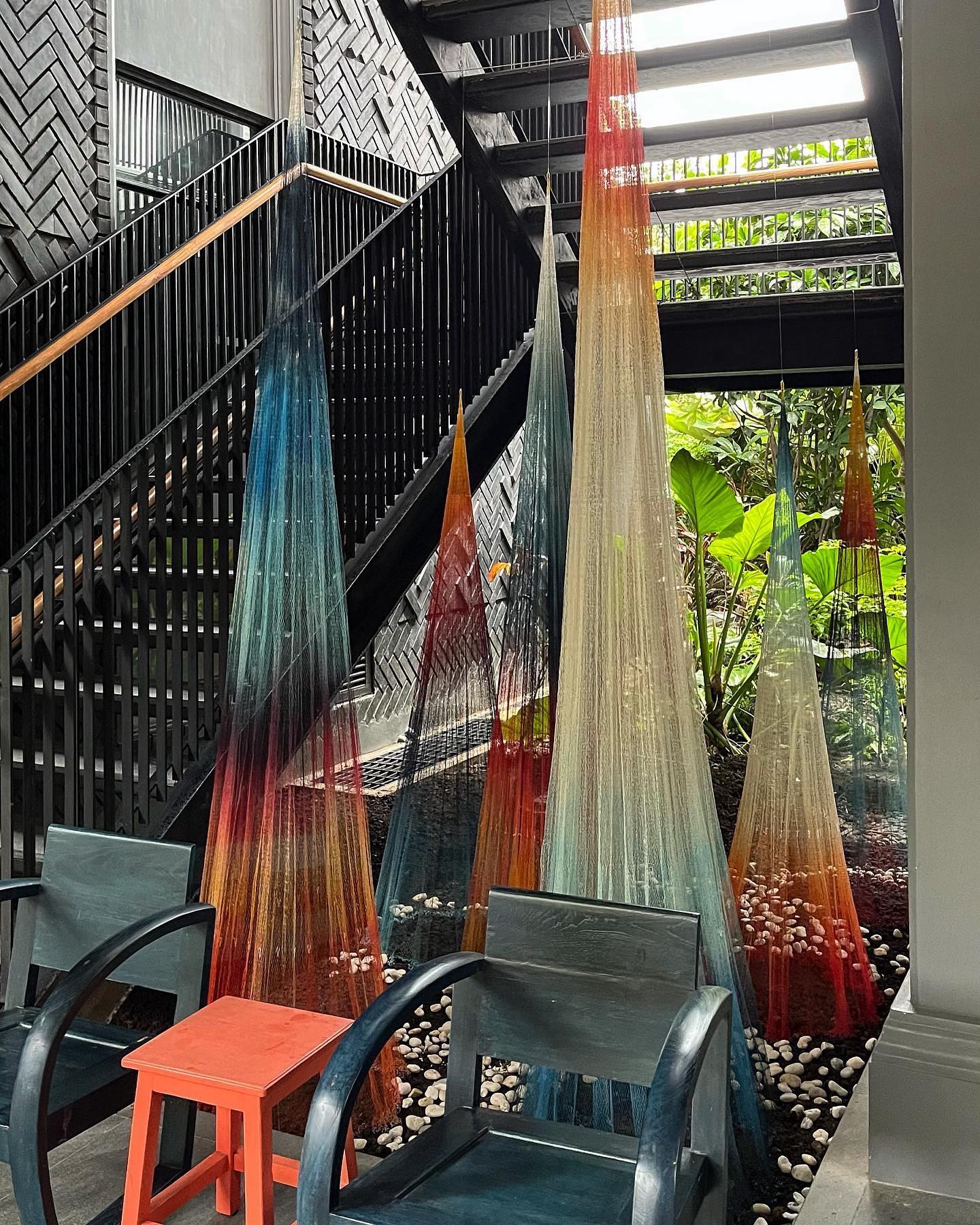 Our buildings are designed to be 2-3 stories to respect and reflect the surrounding context. The building materials are mainly dark grey bricks and up-cycled teak wood which came from old houses, pulled apart and reassembled into our design.