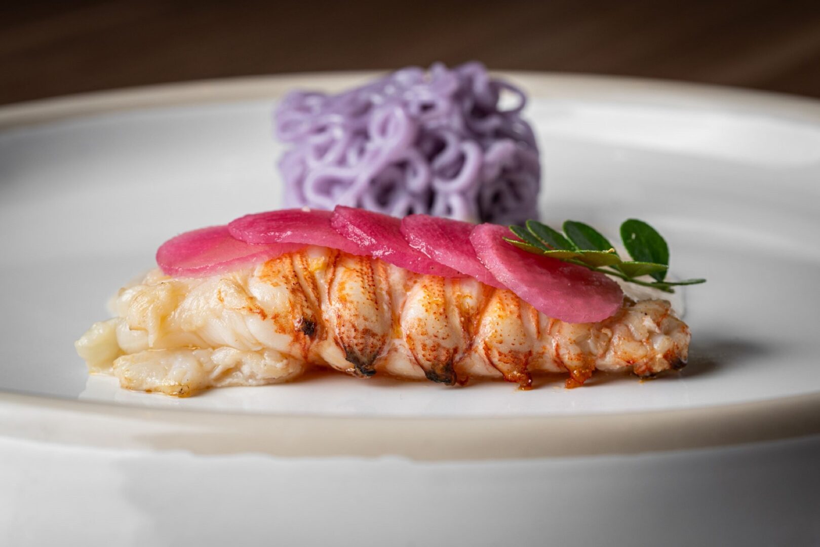 Blue Crab with salicorne and tofu marshmallows, crafted by Chef Hervé, paired with Chef Ian’s Raerai Na Kang Kradan — a traditional fresh rice vermicelli served with flathead lobster and rich coconut cream.
