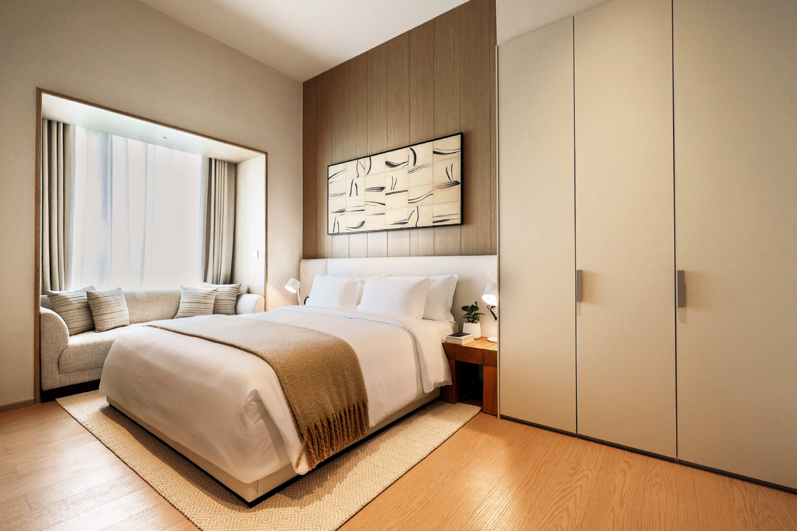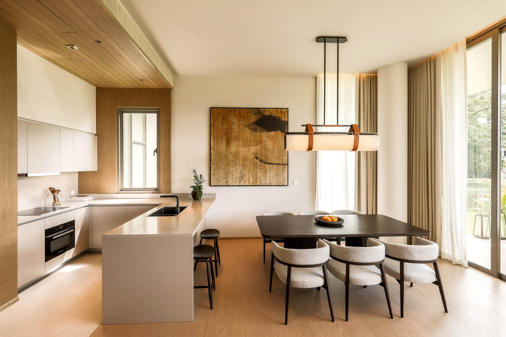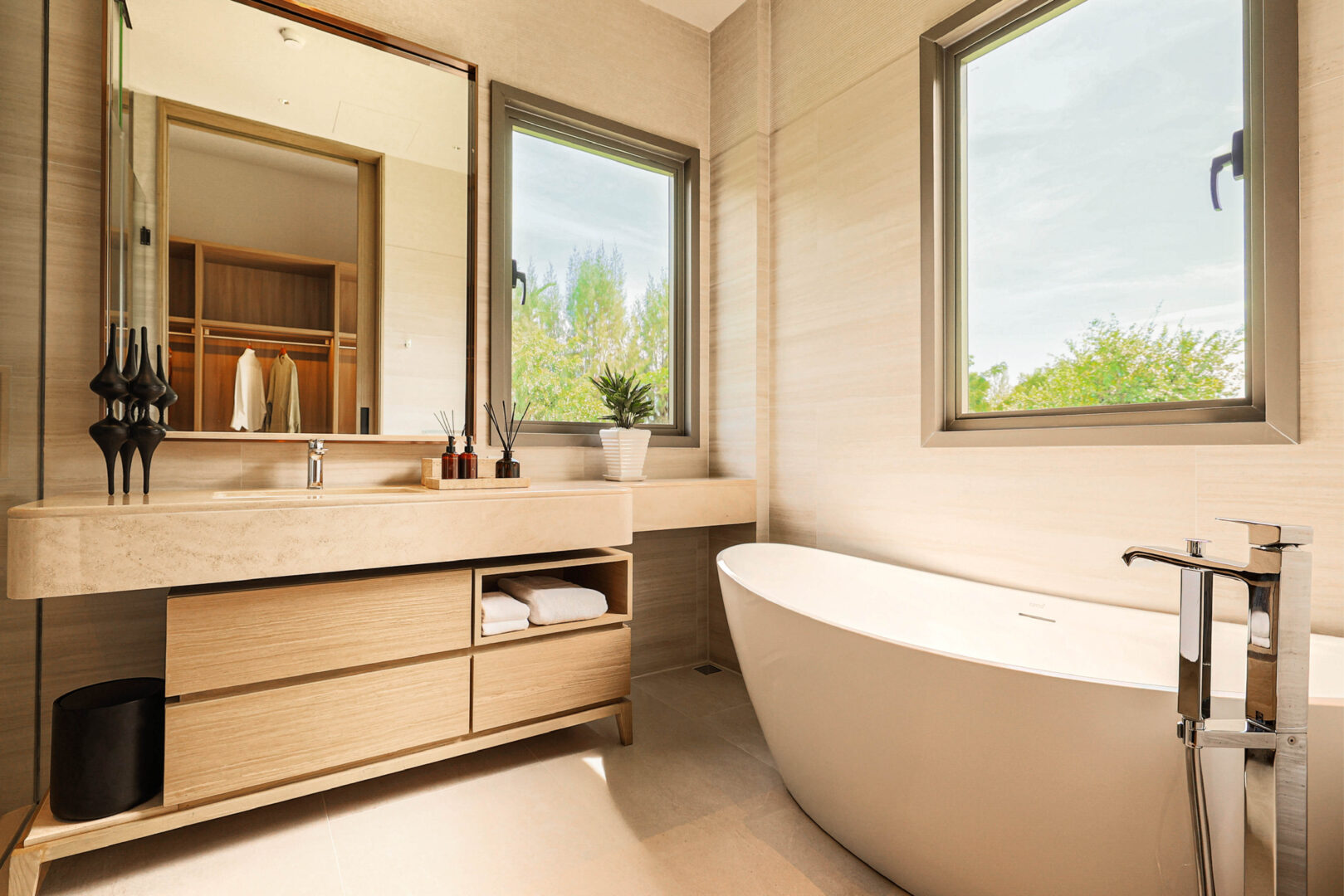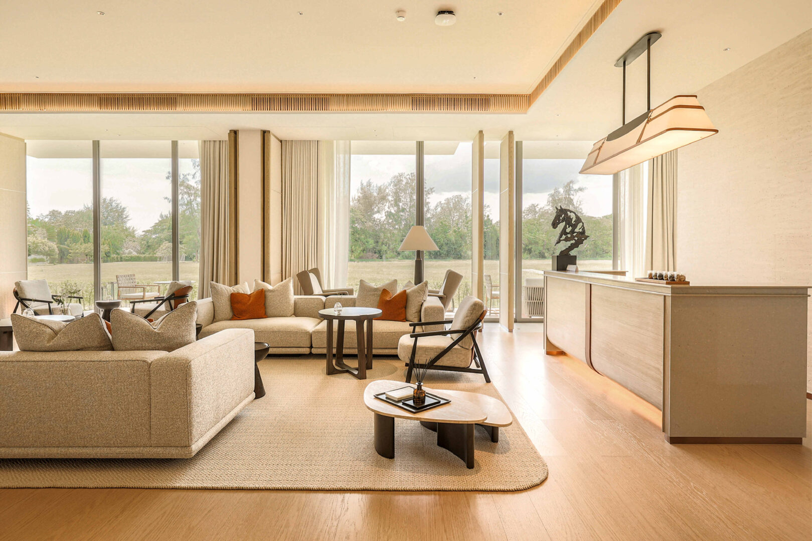 Earth Tone colours blended with wood materials that provide home-like warmth, adding shades of cream-white or light grey and brown to enhance brightness, serenity, and airiness. Prospected individuals can experience the material specifications used in the project firsthand, such as premium tiles imported from Italy or sanitary ware designed with well-being in mind. Furthermore, every unit faces the natural green space of the Bridging Oasis on the actual site, creating an environment that combines the tranquility of nature with a good quality of life in all dimensions. Therefore, visitors to the sales gallery will experience the atmosphere that will truly exist within the project.
