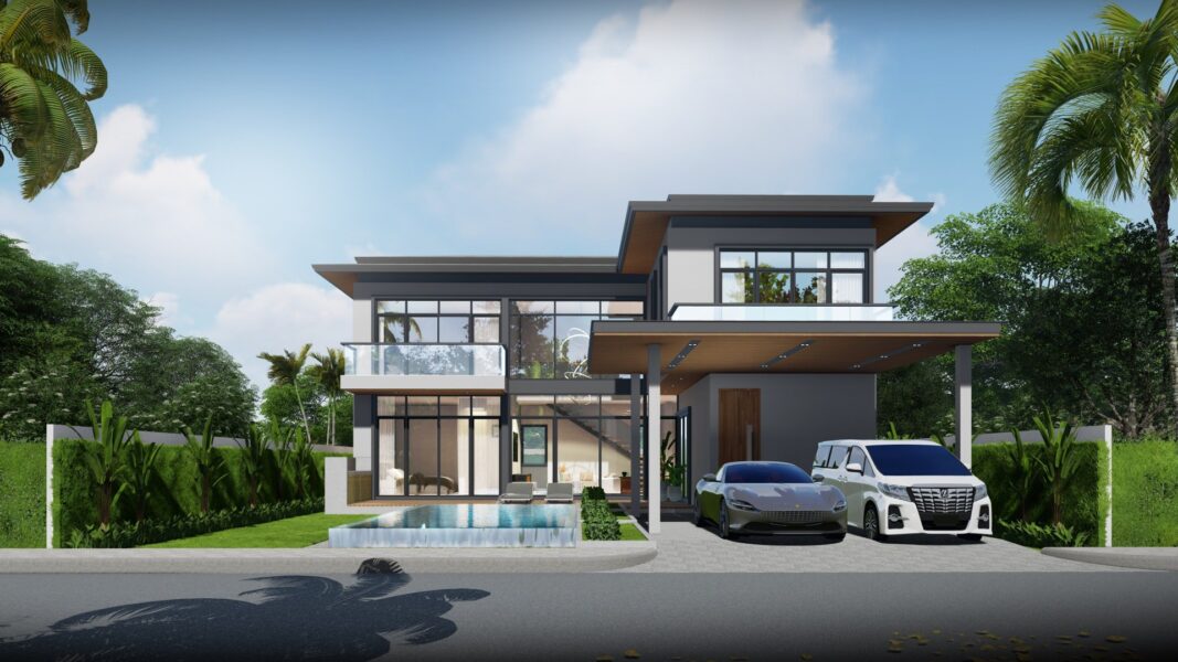 “Currently we have 2 standard villa design types. A 3-bedroom 4 bath single storey pool villas starting on 80 Sq. Wah or 320 Sq.m land plots. These start at as low as 10.95 million THB. Additionally, we have a larger 4-bedroom two storey type B units which start on 86 Sq. Wah or 344 Sq.m plots. Both type A & type B also have the option to have an additional guest house on a number of selective plots.”
