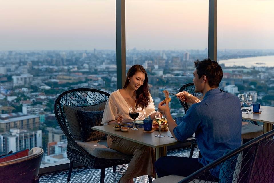 Set across the uppermost levels of INNSiDE by Meliá Bangkok Sukhumvit, LUZ Bangkok Tapas Bar spans the 33rd and 34th floors, where an indoor-outdoor layout opens onto uninterrupted skyline views.