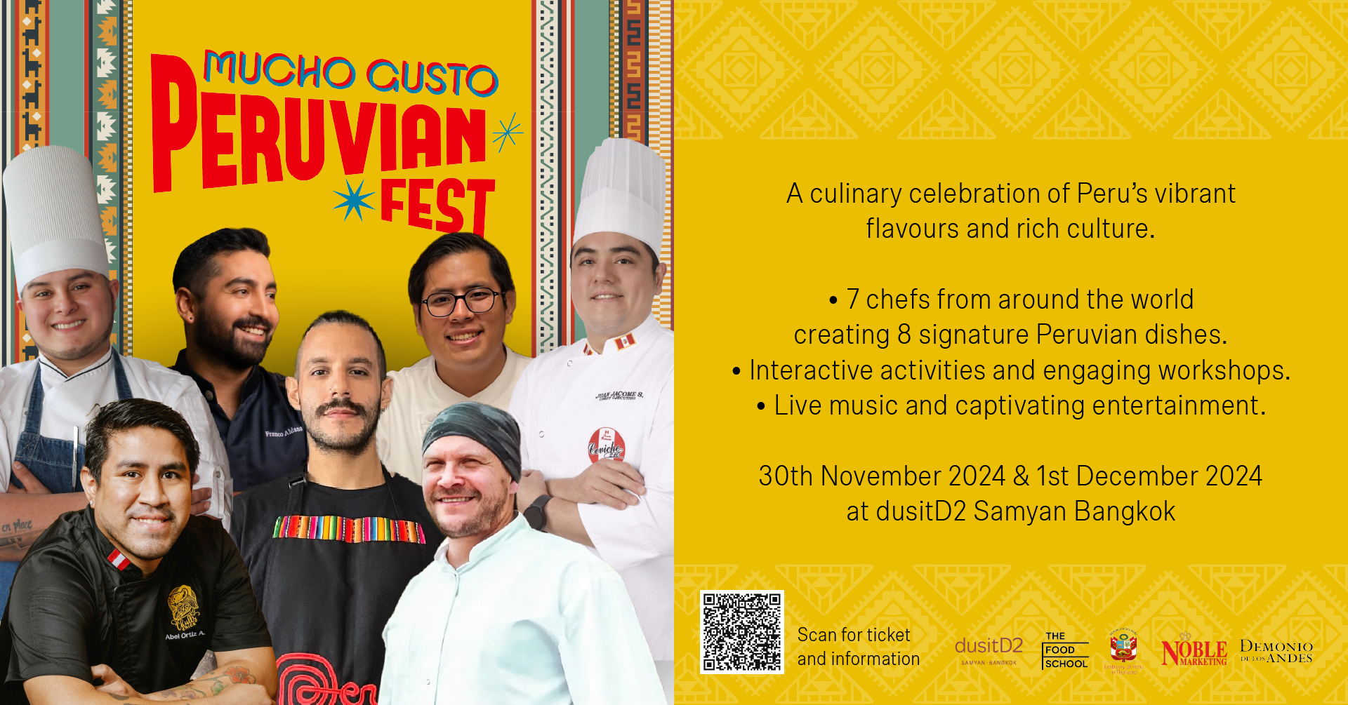 dusitD2 Samyan Bangkok, in collaboration with The Embassy of the Republic of Peru and The Food School, is bringing together seven guest chefs for a special series of dining events and workshops on 30 November and 1 December 2024.