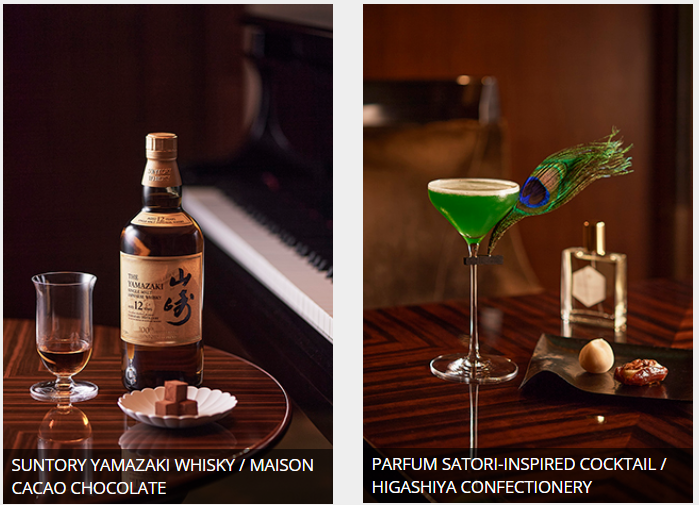 At the hotel’s Lounge Bar Privé, an original JAXURY cocktail inspired by one of Parfum Satori’s most lauded scents will be served alongside wagashi (traditional Japanese sweets) by Higashiya while at The Palace Lounge, a pairing of Suntory’s signature single-malt Yamazaki whisky with artisanal chocolate by Maison Cacao comes with reserved seating piano-side for an evening of live jazz music.