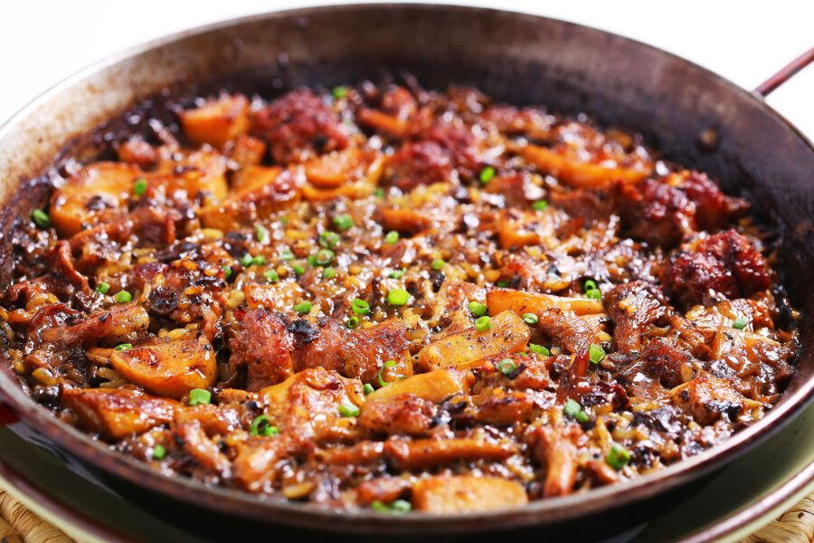 PYRENEES Paella – with wild mushrooms, Iberico Secreto pork, Catalan “Butifarra” sausage and black winter truffle (THB 1,950++)