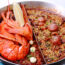 To make any tasty paella, you need authentic Spanish round rice, a blend of herbs and seasoning (like saffron, salt, pepper, paprika and a good squeeze of lemon), a traditional oval pan, and, of course, a talented cook who knows what they’re doing!