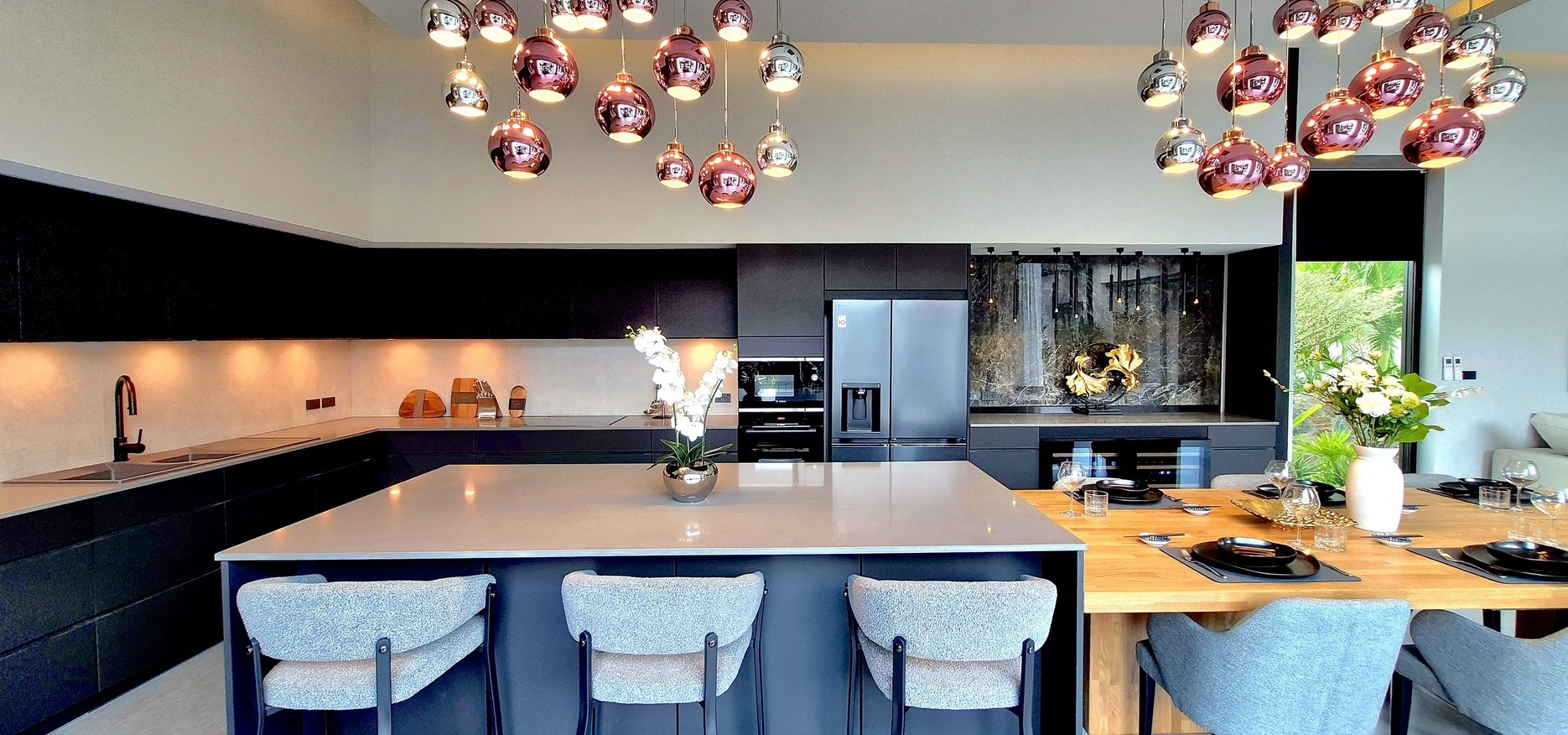 As you enter, the first thing that strikes you is the sense of space. High ceilings, soaring up to 4 meters in the main living area, create an airy and expansive atmosphere, complemented by an open-plan living space that invites both relaxation and entertainment. The entire home is furnished with designer custom furnishings, meticulously selected to enhance the villa’s contemporary aesthetic.