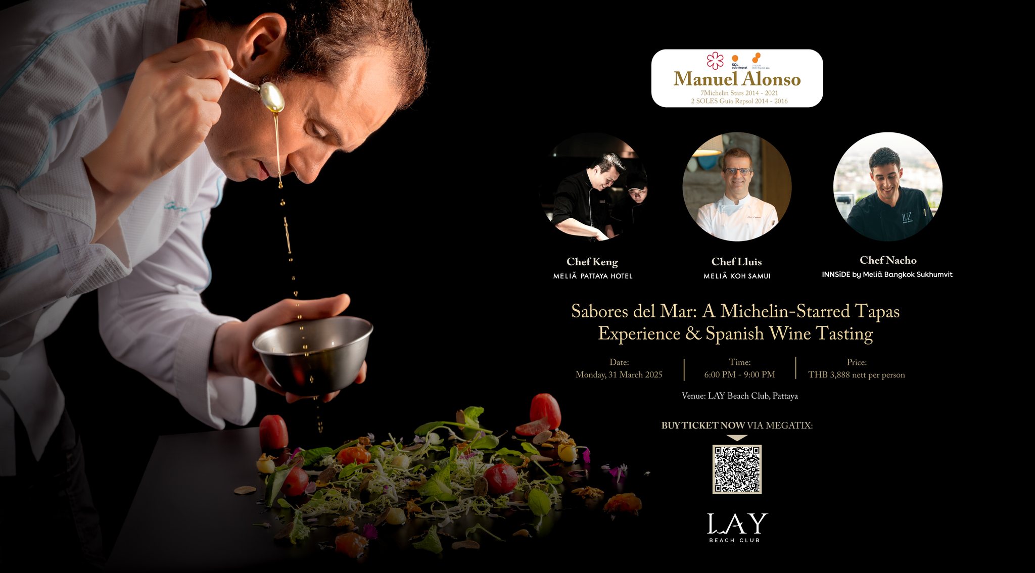 Enhance your experience with a stay on 31 March 2025 at the newly opened Meliá Pattaya Hotel, including breakfast for two and this exclusive Michelin-starred dining event: