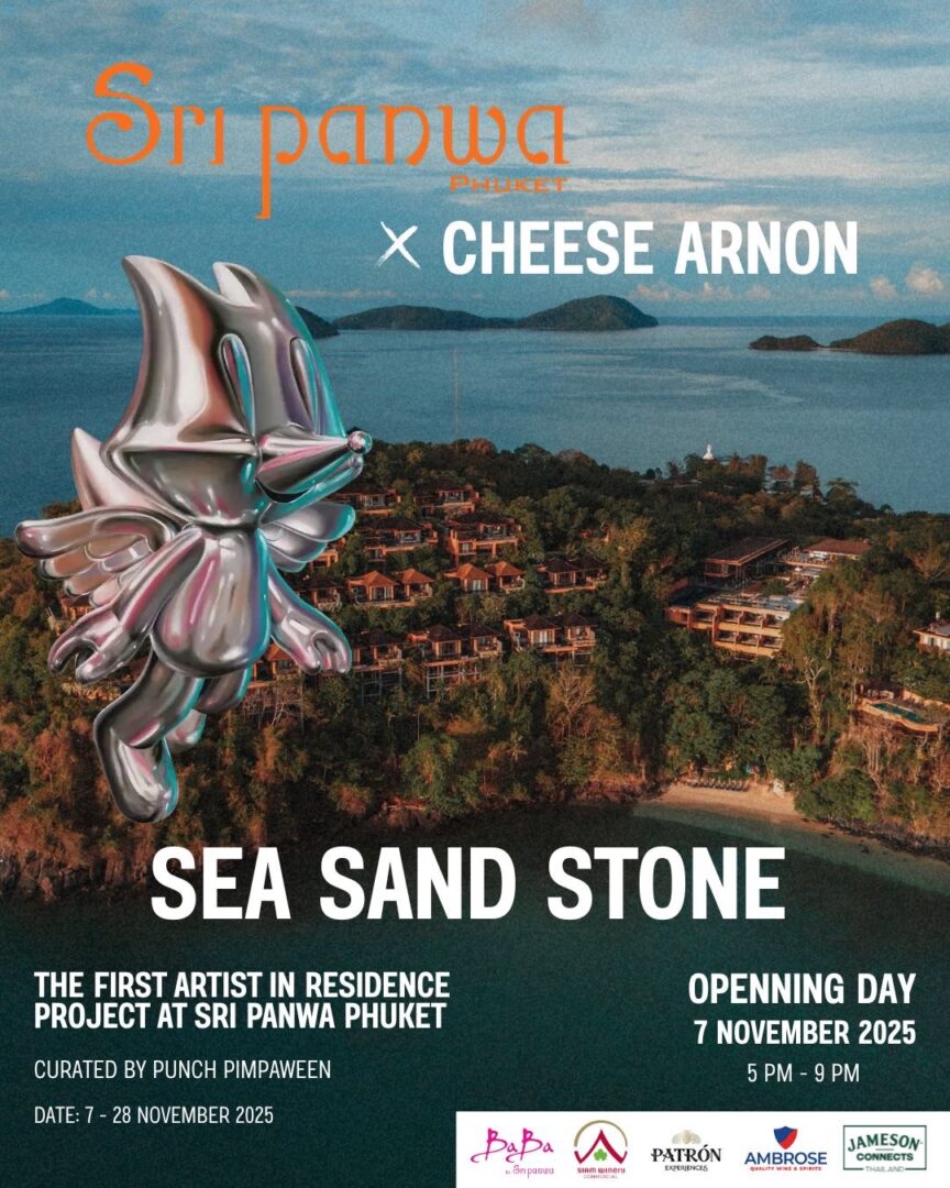 The exhibition marks the first Artist-in-Residence program by Sri panwa Phuket, a luxury resort deeply committed to fostering art and creativity. This special collaboration brings together Cheese Arnon, whose captivating style bridges fine art and storytelling, and curator Pimpaween Soonthornthamrat, who has carefully conceptualized and guided the artistic direction of the residency.