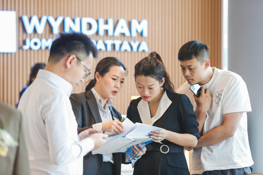 The project management team led by Ms. Jitdanan Phanaphuchong, CEO of Siam Inter World Asset Co., Ltd., Mr.Yothin Hanwanitrungrueang Mr.Shi Yong Lin, and Mr.Somsak Saelong, General Manager of Siam Inter World Asset Co., Ltd. jointly opened Wyndham JomtienPattaya on February 11, 2023 at Project sales office.