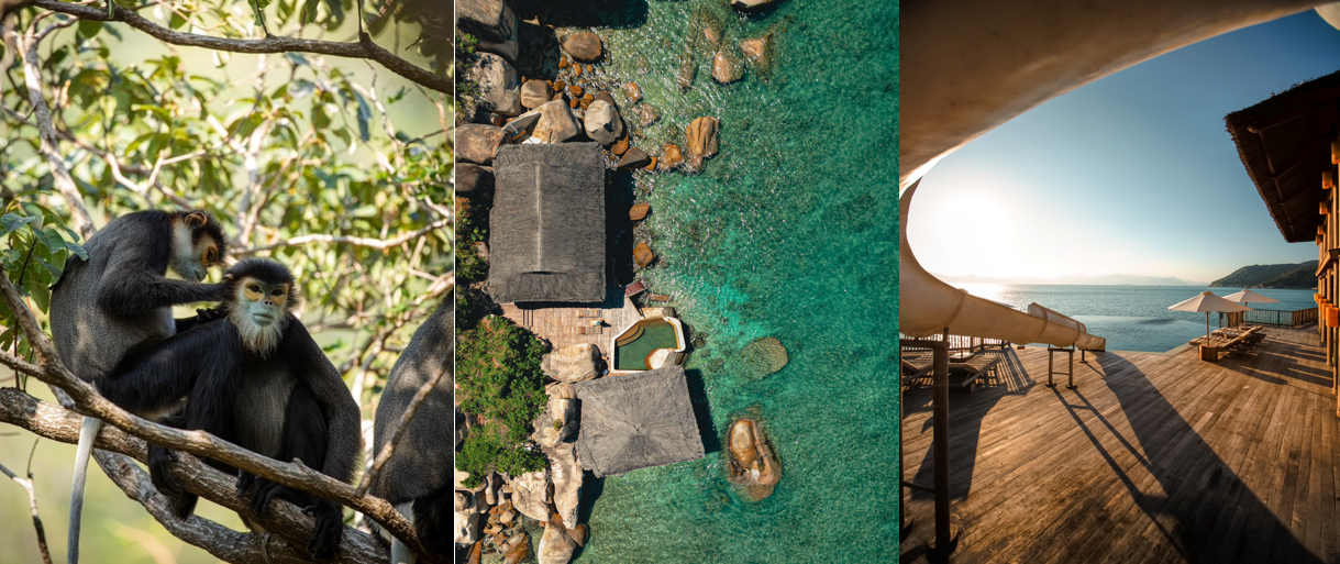 Excursions Into Wildlife at Six Senses Ninh Van Bay include a popular morning hike with the resident terrestrial biologist, Ms. Quynh, to learn about forest life and the efforts to protect a troop of critically endangered monkeys (black-shanked douc langurs). Their numbers are growing year on year thanks to habitat protection and extensive research, which is forging a deeper understanding of their diet and behaviors.