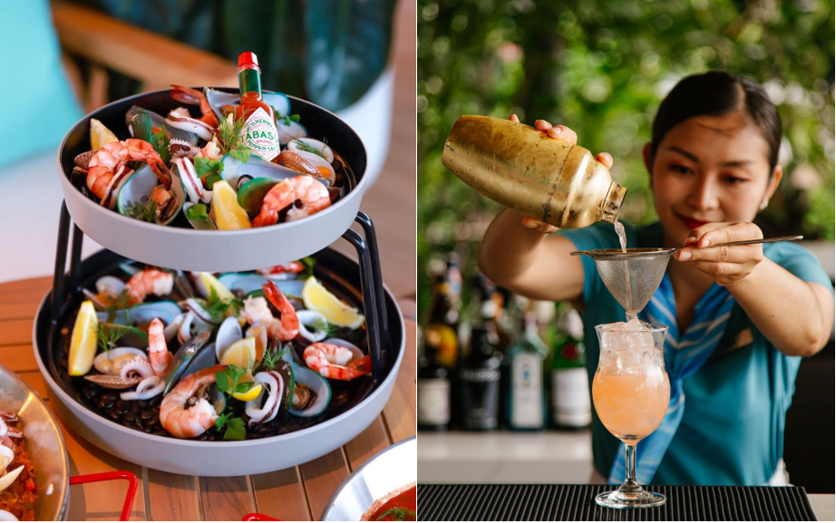 Cocktails such as the pandan-scented ‘Blue Tides’, made up of vodka, coconut juice, pandan syrup and coconut milk topped with blue coconut foam, bring creative flair to the menu. ‘The Wave Rider’ is characterised by floral and citrus notes, featuring gin, Lillet Rosé, rose syrup, aloe vera juice, egg white and lime juice. A reinterpretation of a classic Bloody Mary, ‘Sriracha Spark’ packs a punch with clarified vodka, Sriracha sauce, tomato juice, green olive juice, lime, paprika, and salt and pepper.