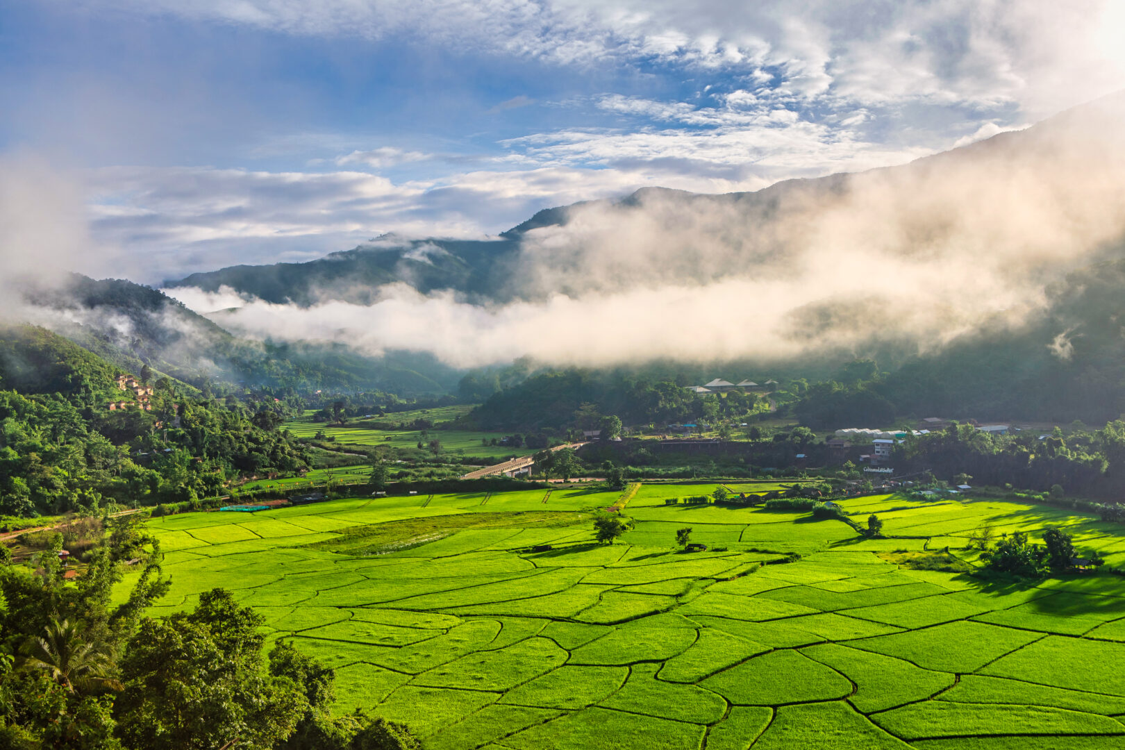 The lower northern region is presented through its forests and rivers that invite deep breaths. Starting with Thi Lo Su Waterfall in Tak province, a destination that defines the word “spectacular” with its magnificent and tiered cascades amidst pristine nature. It is renowned as the most beautiful limestone waterfall in Thailand, promising an impressive sight from the very first glance. This is followed by Wat Phra That Pha Son Kaew in Phetchabun province which is situated amidst the complex mountain ranges of Khao Kho. It offers panoramic views at all times of the day. On a clear morning, a sea of mist can be seen floating around the temple as if in heaven. The temple captivates with its ordination hall or Ubosot where five seated Buddha images in descending sizes are housed while the Phra That Pha Son Kaew Chedi offers many beautiful photo opportunities as it is beautifully decorated with colourful tiles, jewellery, necklaces, bracelets, and Benjarong porcelain.
