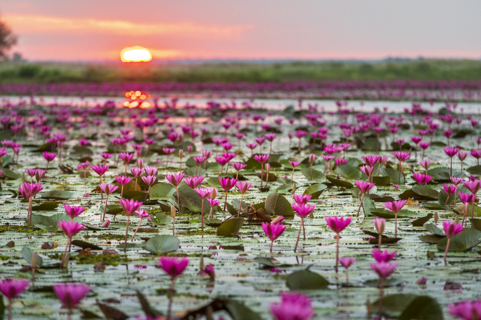 In the northeastern region, LISA leads viewers into a feeling of deep and unique charm as the Red Lotus Sea in Udon Thani province appears amidst the golden morning light, with pink lotuses blooming across the water’s surface, creating a naturally romantic atmosphere. Tens of thousands of red lotuses bloom simultaneously, creating the magnificent Red Lotus Sea. The water of Nong Han Lake appears as if dyed by a vast pink carpet stretching to the horizon, allowing visitors to feel calm and relaxed, as if nature itself is painting the water with colour and vibrancy.