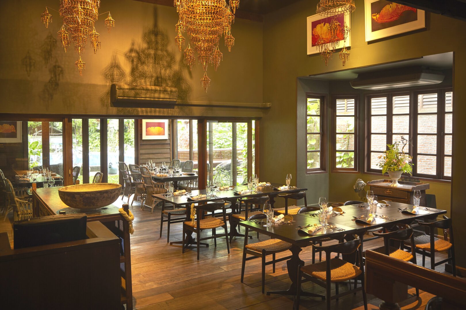 Nusara, led by Chef Thitid “Ton” Tassanakajohn—the talent behind Le Du, holder of One MICHELIN Star since 2019—offers one of Bangkok’s most intimate Thai dining experiences. With elegant olive-green interiors, gold accents, and a rooftop view of Wat Pho, the journey features welcome bites and standout dishes like Thai Wagyu stir-fry with holy basil and a quartet of regional relishes.