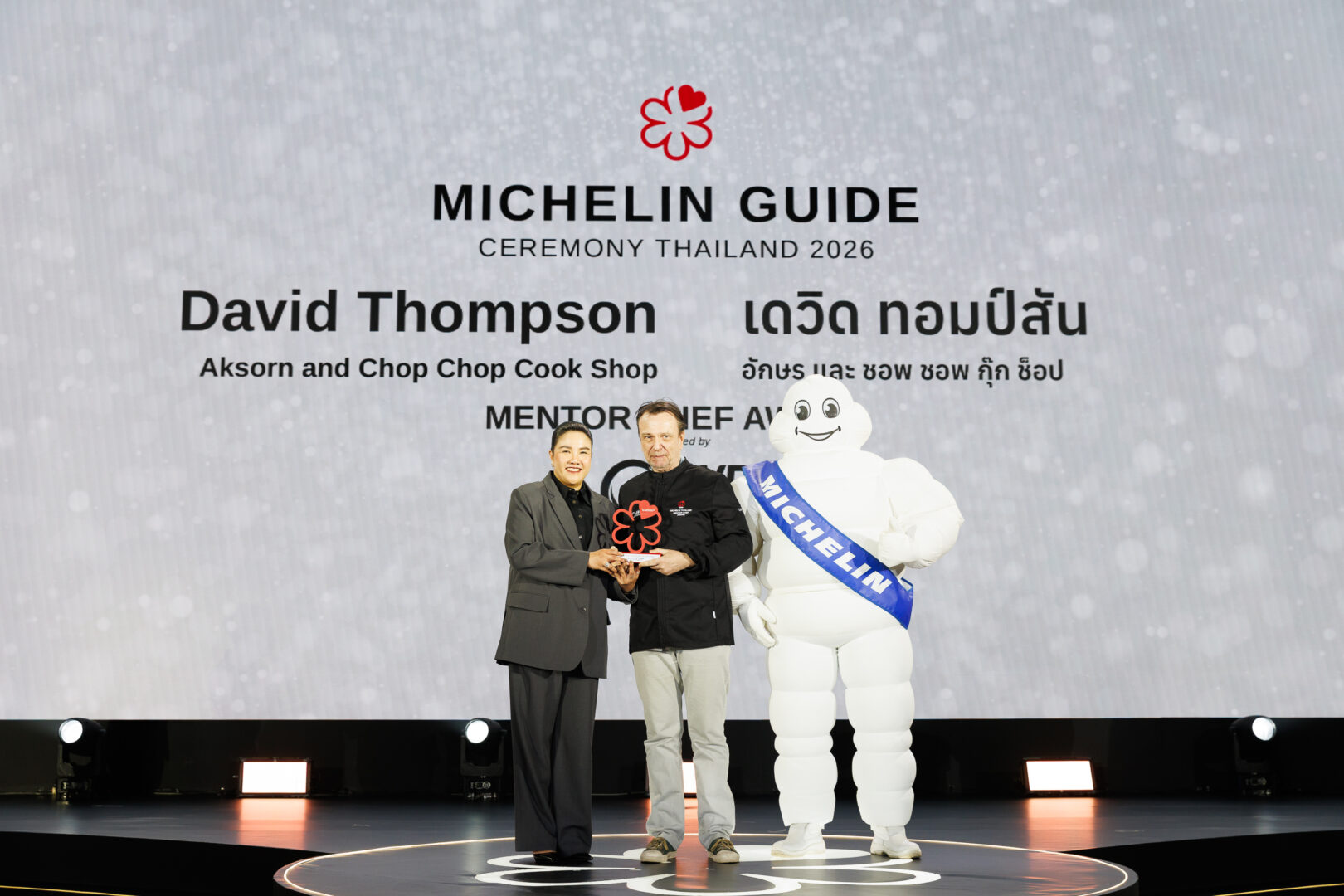 The MICHELIN Guide Mentor Chef Award honors chefs whose unwavering dedication to nurturing the next generation has made a lasting impact on the culinary industry. Marking a milestone for Thailand, the country’s first-ever Mentor Chef Award, presented by WP Energy, is bestowed upon David Thompson, the Owner-Chef of Aksorn (One MICHELIN Star) and Chop Chop Cook Shop (MICHELIN Selected).