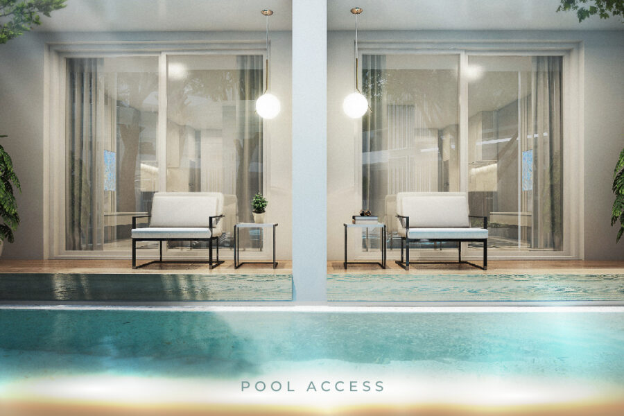 There are 3 room styles to choose from; Studio 25 – 29 sqm, 1 Bedroom 33 – 45 sqm and 2 Bedroom 53 – 55 sqm along with special with pool access rooms (balcony connecting to the pool).