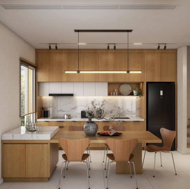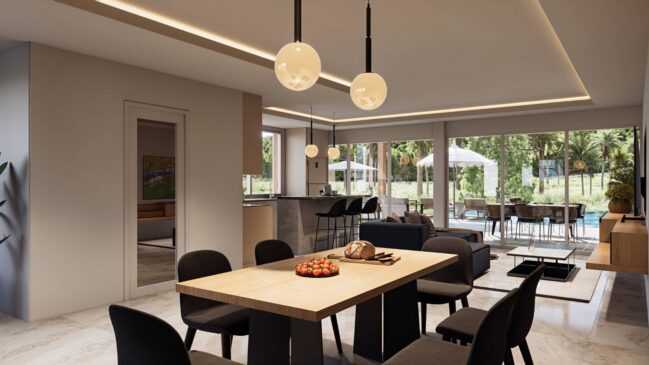 Sophisticated architectural design, combining natural materials with modern aesthetics.