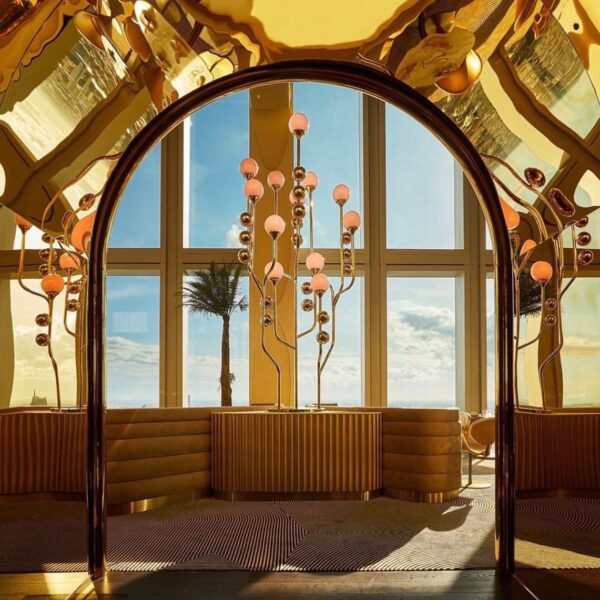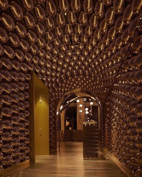 The Mexican-inspired restaurant on its 76th floor, where it overlooks the city. The name Ojo, which means ‘eye’ in Spanish, symbolises the all-seeing eye of a higher power, and is a nod to the concept of Ojo de Dios (Eye of God), which is deeply rooted in daily Mexican life, folklore and culture. Designed by Ou Baholyodhin, the venue’s rich, jewel-toned aesthetics take inspiration from the continent’s precious metals and gemstones, in addition to subtly referencing the mysticism of Latin America’s ancient civilisations. The palette of gold accents and gemstone hues comes together to form the visual representation of an architectural crown jewel.