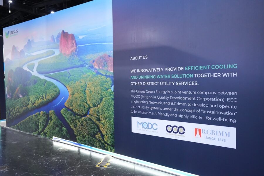 Unisus Green Energy Company Limited (Unisus Green Energy), Thailand’s first and leading expert in private district utility design and implementation, made its official debut. The company is a joint venture between three major players in real estate, engineering, and energy – Magnolia Quality Development Corporation Limited (MQDC), EEC Engineering Network, and B.Grimm – with an aim to revolutionize the real estate sector towards a sustainable future by applying its expertise in designing and implementing “district utility systems.” Unisus Green Energy offers two innovative solutions, including a “district cooling system (DCS)” and a “district drinking water system (DDWS)” which are designed to assist property developers in cutting costs, reducing energy consumption, enhancing residents’ quality of life, and contributing to a greener world. Both system simulation models are being showcased for the first time at “Nova BUILD EXPO 2023,” an exhibition highlighting modern building innovations at BITEC Bangna.