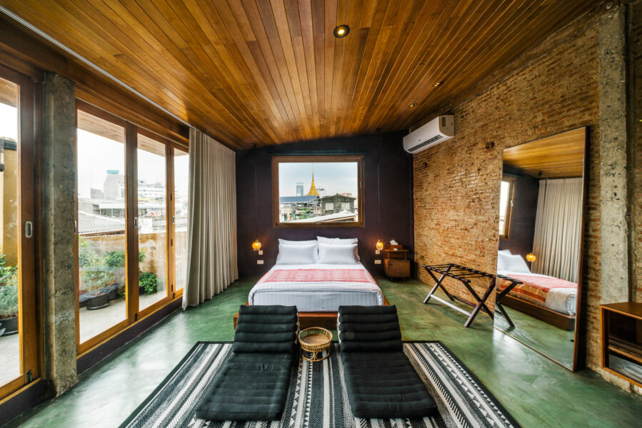 3 Bedroom Townhouse This stylish three bedroom retreat doubles as an urban oasis in the heart of Yaowarat. Its retro cool rockstar vibe comes with an ensuite for every room and a cosy living area, while Chinatown’s culinary delights and rich heritage are just steps away.