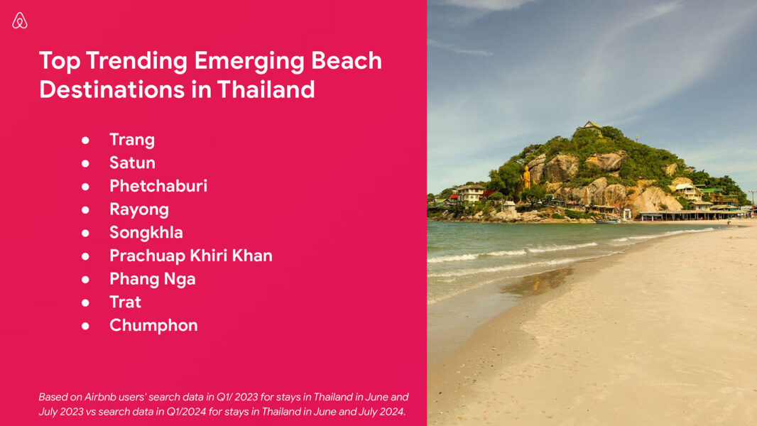Travelers are seeking out lesser-known beach destinations  While the beach destinations of Phuket, Samui, Krabi and Chonburi remain popular with Airbnb guests from around the world, there’s a clear trend of travelers seeking out lesser-known beach destinations in search of their own slice of beach paradise.