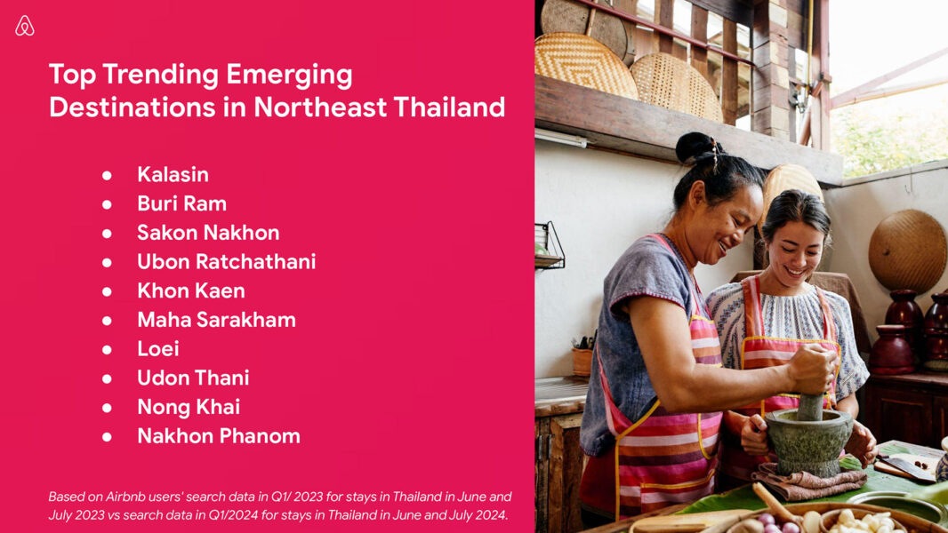 Northeast Thailand and the far south are new break-out regions as Airbnb guests look to explore new off-the-beaten path destinations.